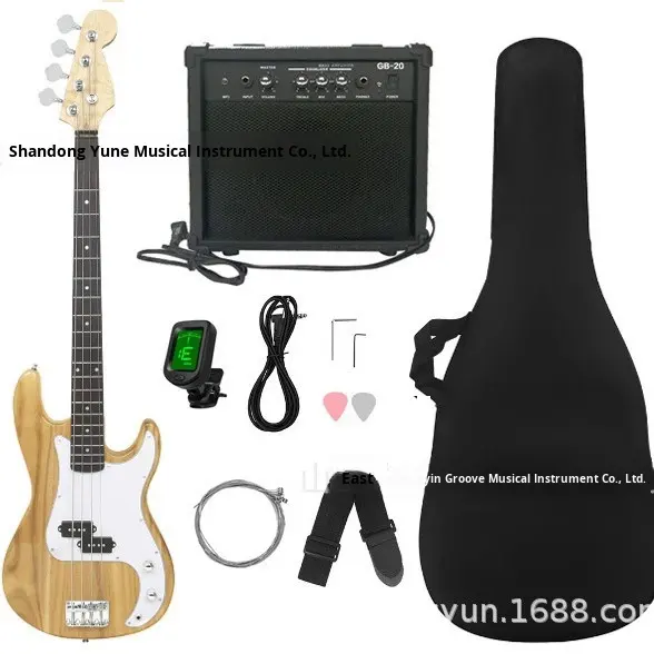 กีตาร์เบสไฟฟ้า 4 สาย ไม้แท้ คุณภาพสูง ขายดีข้ามพรมแดน ผลิตจากโรงงานโดยตรง เหมาะสำหรับผู้เริ่มต้น ผลิตในเจ้อเจียง ประเทศจีน