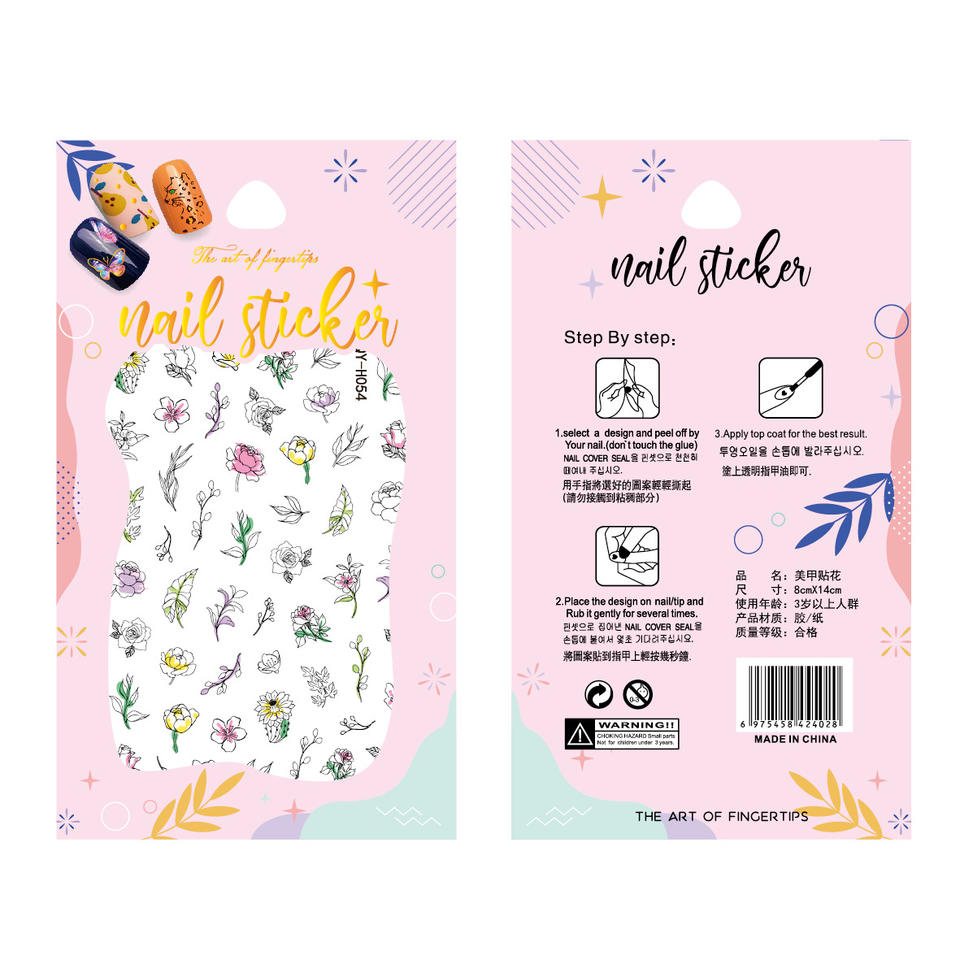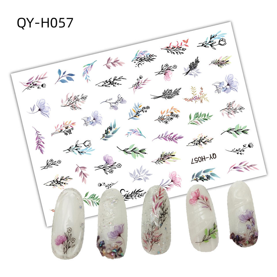 สติกเกอร์ใหม่ขายดีแบบข้ามพรมแดนพร้อมแผ่นติดด้านหลังแผ่นแปะติดเล็บลายดอกไม้ฤดูใบไม้ผลิ