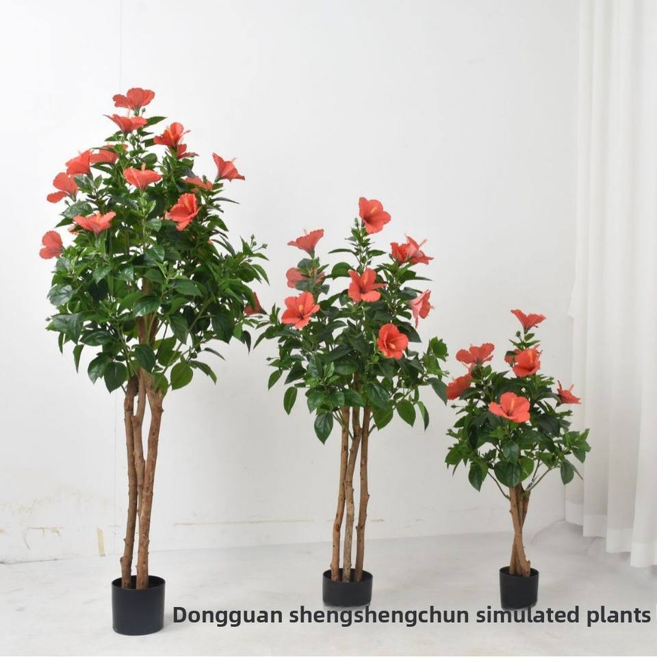 ต้นชบาประดิษฐ์สำหรับตกแต่งห้องนั่งเล่นในร่มแบบข้ามพรมแดนสำหรับดอกอเมซอนมาเลเซีย