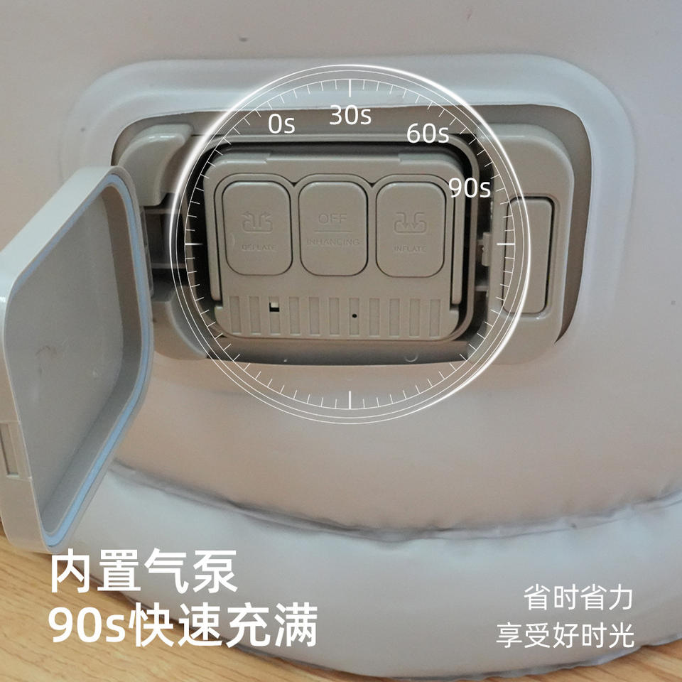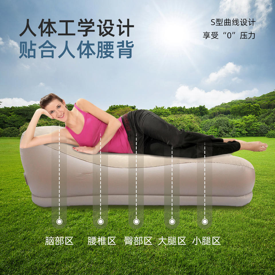 โซฟาเป่าลมแบบพกพา สีเบจ หนา 60 ซม. พร้อมปั๊มลมในตัว สำหรับ 1 คน ใช้สำหรับตั้งแคมป์กลางแจ้ง ปรับเอนได้