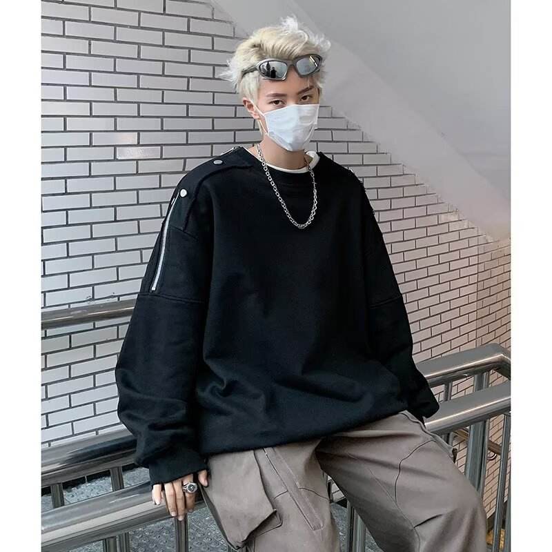 เสื้อสเวตเชิ้ตผู้ชายสไตล์ญี่ปุ่นแบบครอส-บอร์เดอร์ ผ้าขนสัตว์ผสมสี ดีไซน์เรียบง่าย ทันสมัย ทรงหลวม เนื้อผ้ามีเท็กซ์เจอร์ ให้ความรู้สึกหรูหรา เหมาะสำหรับฤดูใบไม้ผลิและฤดูใบไม้ร่วง