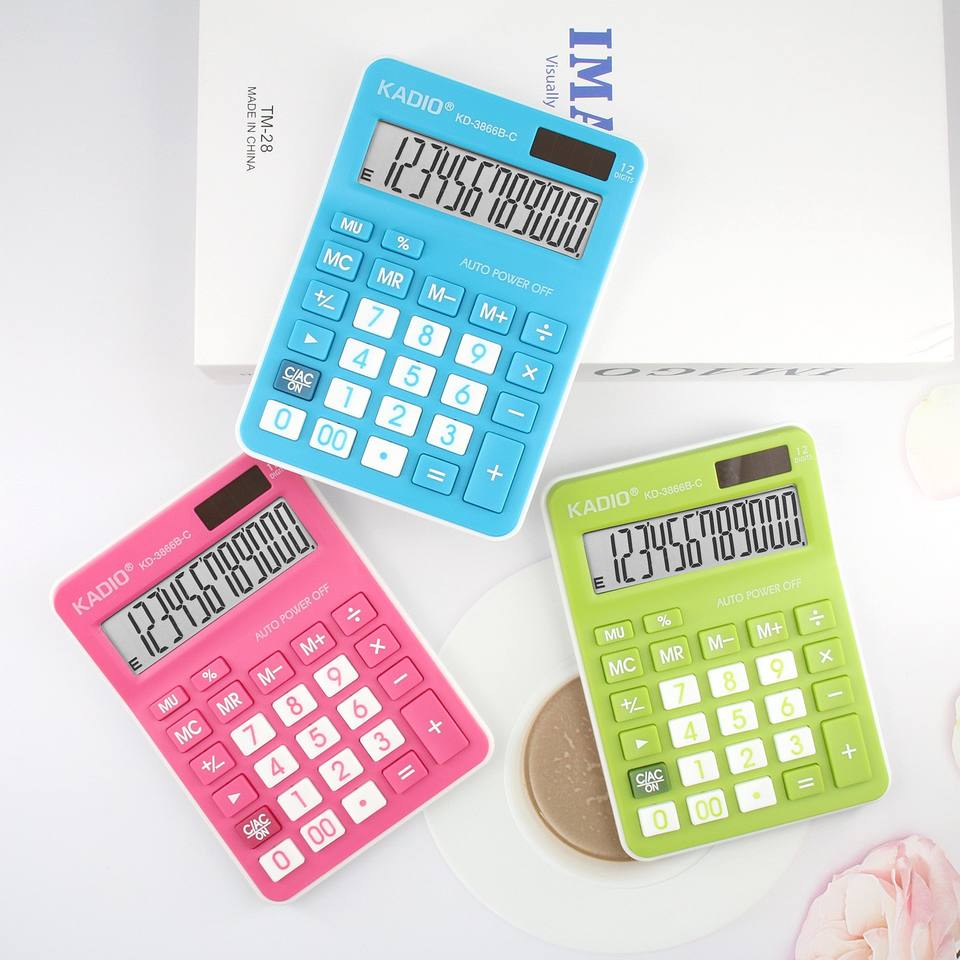 เครื่องคิดเลขแบบตั้งโต๊ะ KD3866B สีขาว 12 หลัก สำหรับนักเรียน ใช้พลังงานจากแบตเตอรี่ ผลิตจากพลาสติก เหมาะสำหรับสำนักงาน