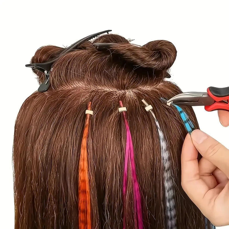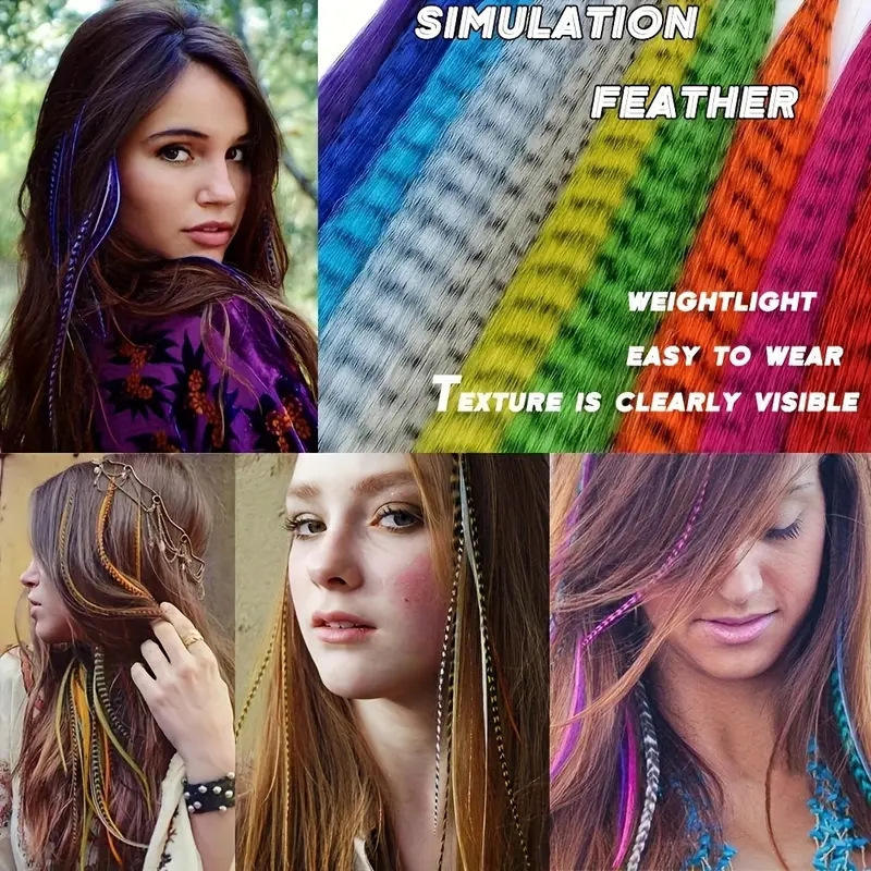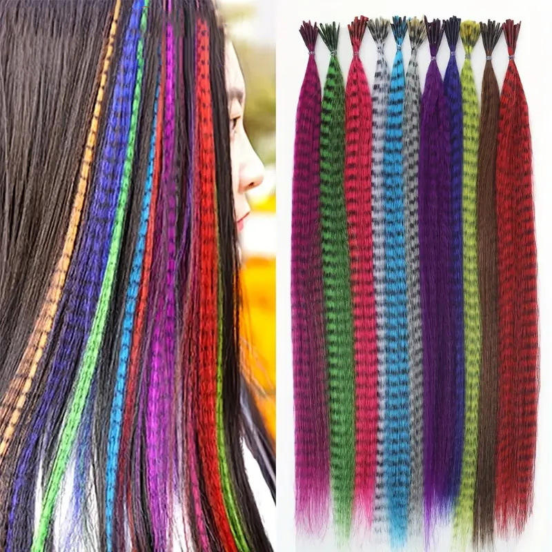 ต่อผมลายเสือดาวแบบไขว้เส้นใยทนความร้อนสูง สีสันสดใส ลายทางเหลือบรุ้ง ยาวตรง