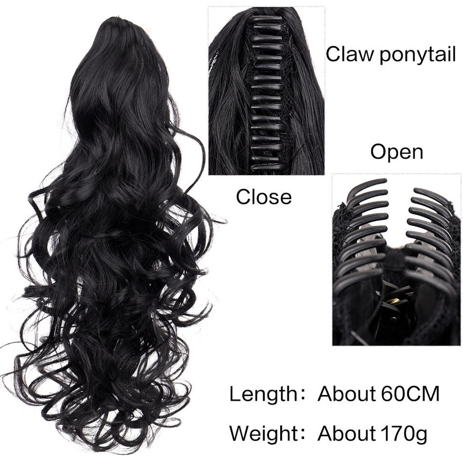 วิกผมหางม้ายาวแบบไขว้เส้นผมธรรมชาติ ทนความร้อนสูง ลอนใหญ่ฟู พร้อมกิ๊บติดผมสำหรับผู้หญิง