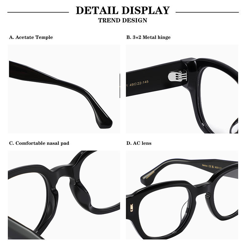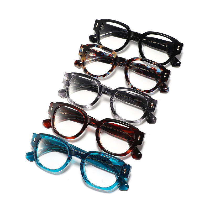 กรอบแว่นตาอะซิเตทหรูหราแบบครอสบอร์เดอร์ ทรงวงรีเต็มกรอบ สำหรับทุกเพศ ป้องกันรังสียูวี แว่นสายตา ผลิตที่เวินโจว รุ่น 8629 เลนส์ใส
