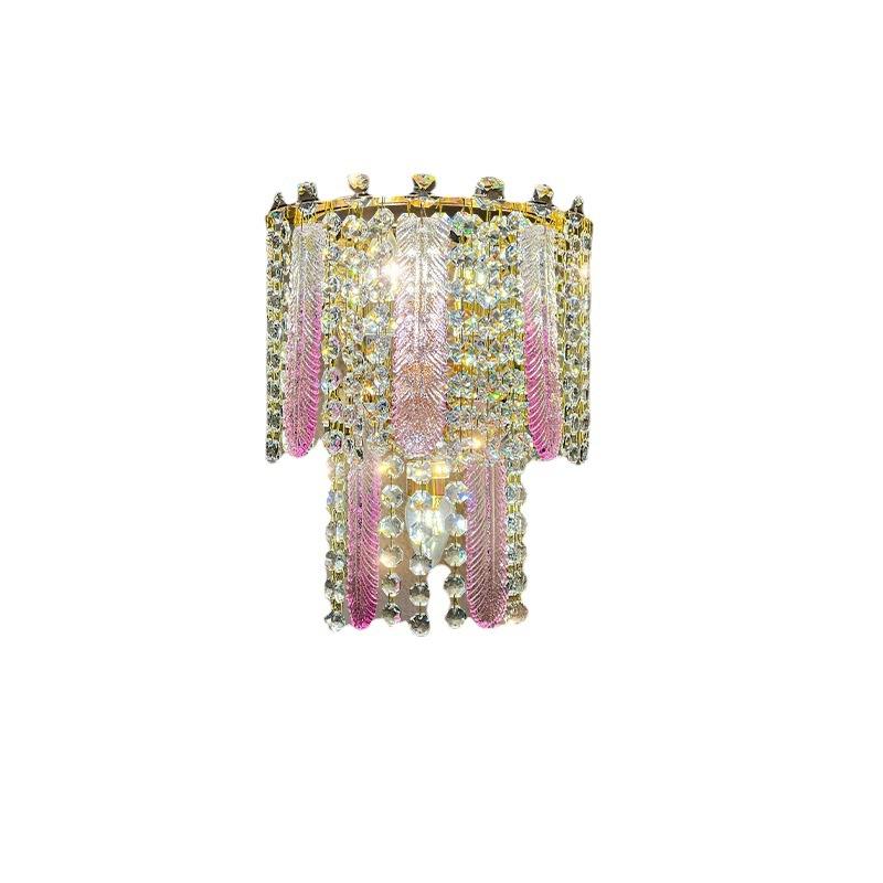 โคมไฟติดผนังทรงขนนกแก้วสีชมพูสุดหรูสไตล์โพสต์โมเดิร์นสำหรับห้องนอนและห้องนั่งเล่น เหมาะสำหรับห้องสาวๆ ที่ชื่นชอบสไตล์อินฟลูเอนเซอร์