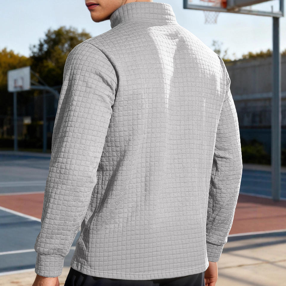 Cross Border Men's Autumn Winter Quarter Zip Sweatshirt Loose Fit Casual Stand Collar Plaid Design With Label