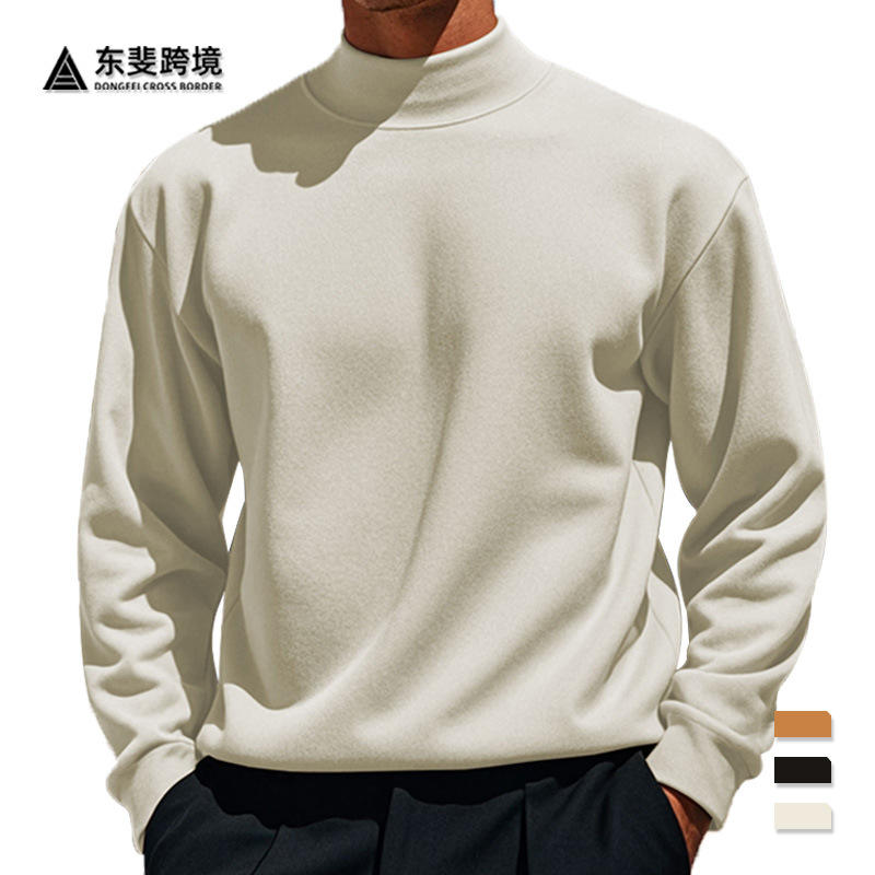 Cross Border Men's Autumn Winter Wool Solid Color Long Sleeve T-Shirt Close Fit Semi Round Neck Base Layer Undershirt