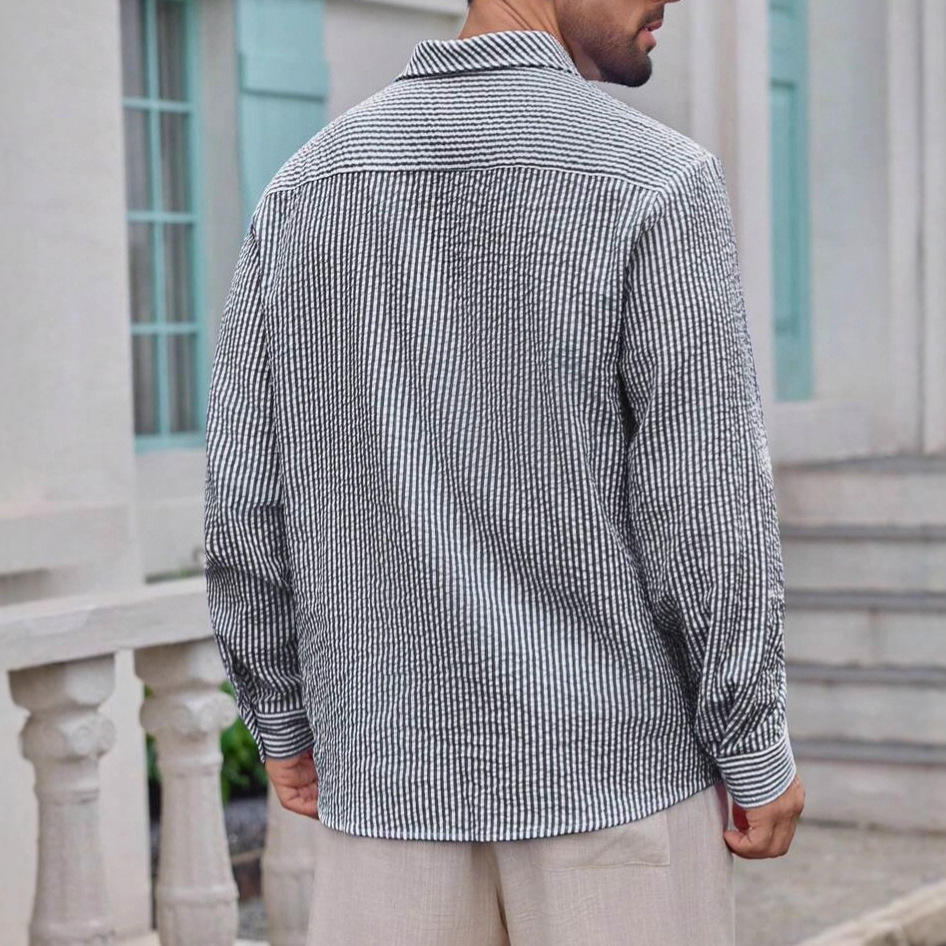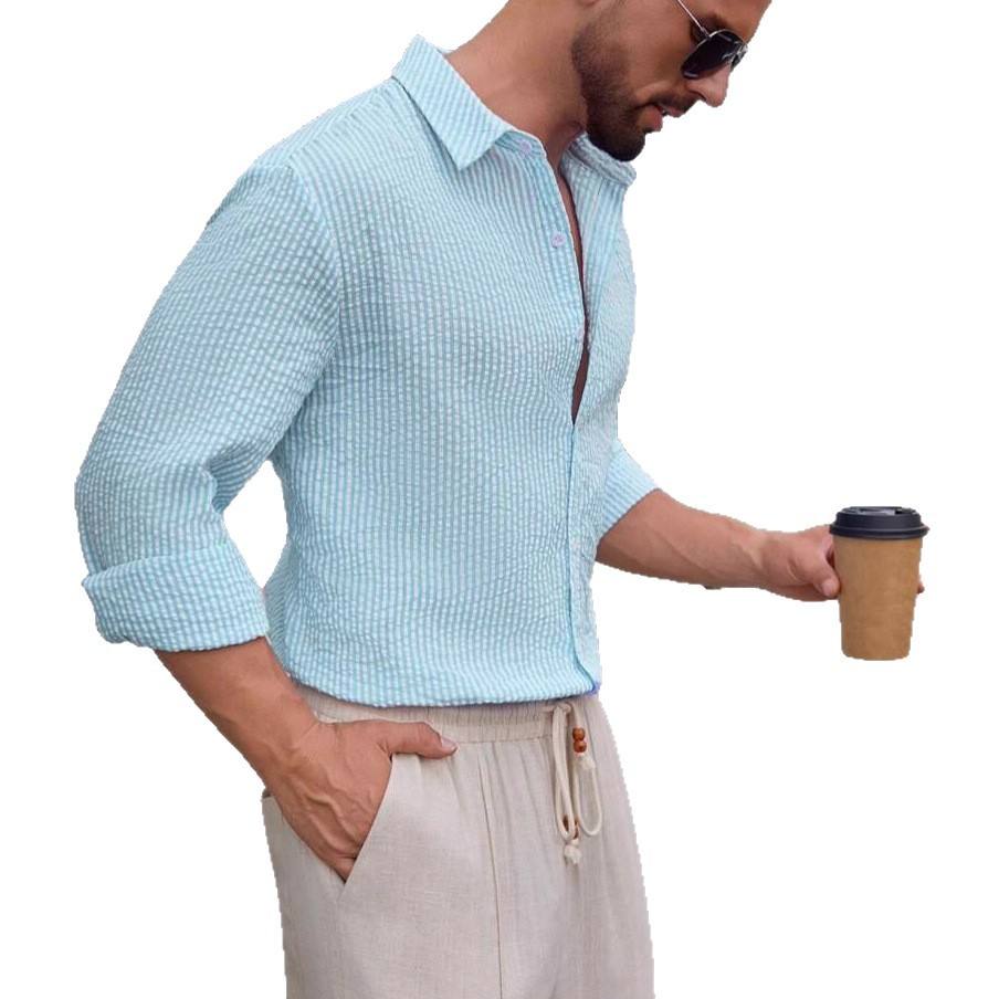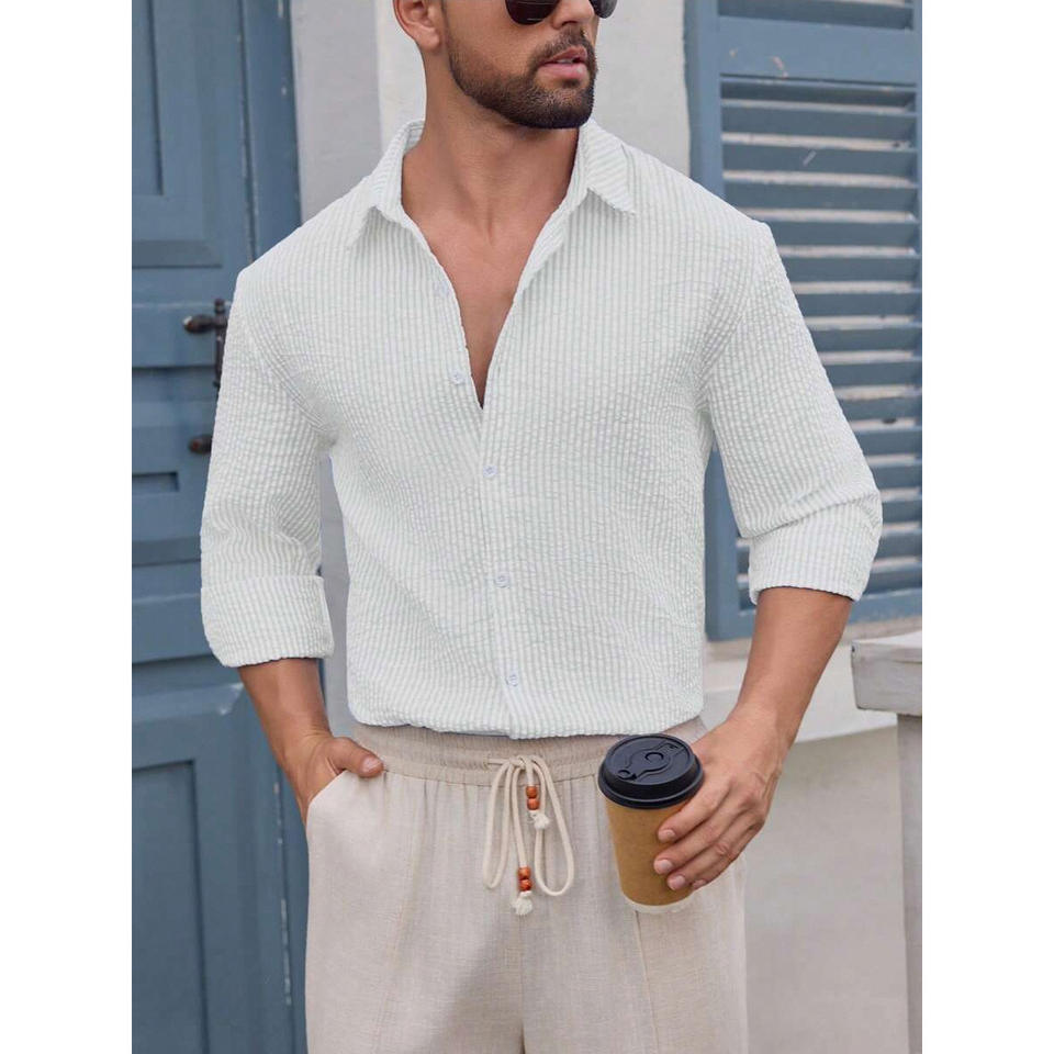 เสื้อเชิ้ตลายสก็อตแขนยาวผ้าฝ้ายระบายอากาศสำหรับผู้ชายสไตล์ลำลองทรงเข้ารูป