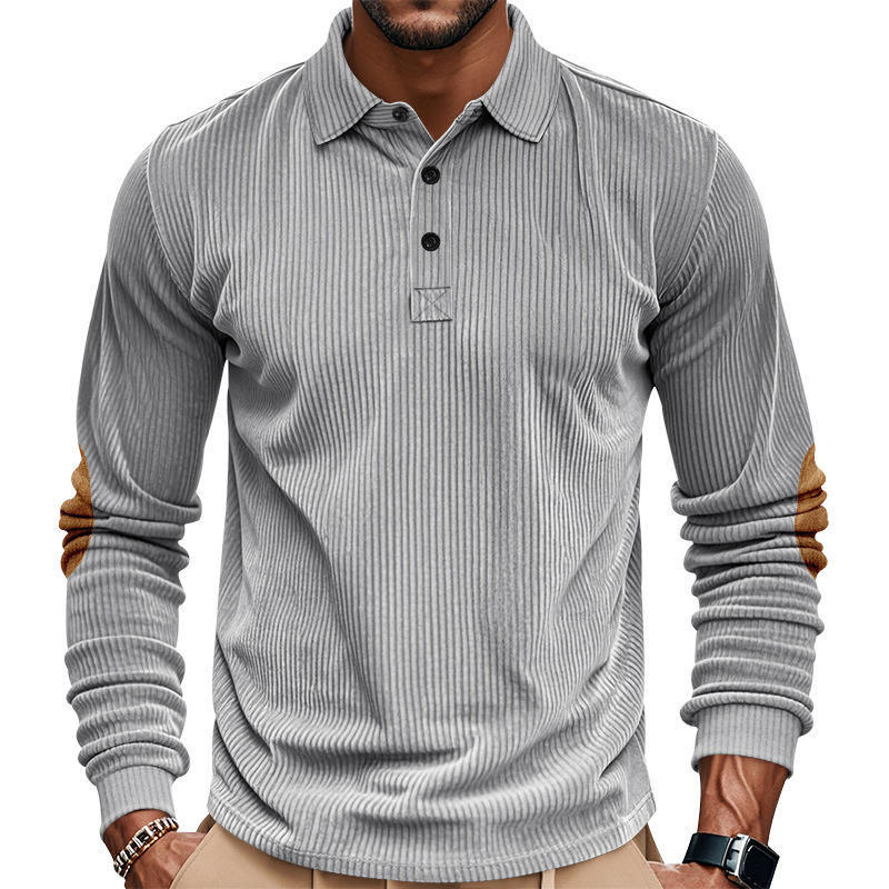 เสื้อโปโลแขนยาวผ้าลูกฟูกสำหรับผู้ชายแบบครอสบอร์เดอร์ สีเขียวทหาร ลำลอง สำหรับกิจกรรมกลางแจ้ง ดีไซน์แบบปะติดปะต่อ ใส่ได้ทุกวัน