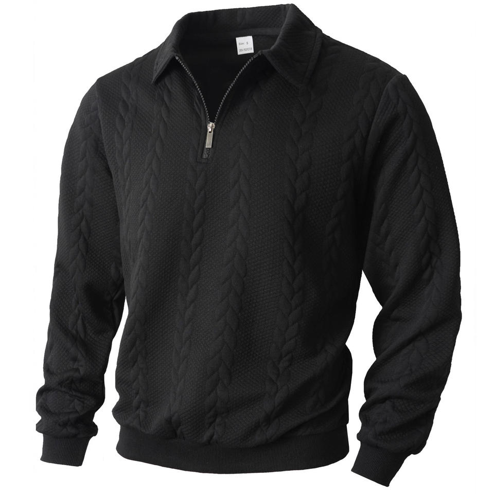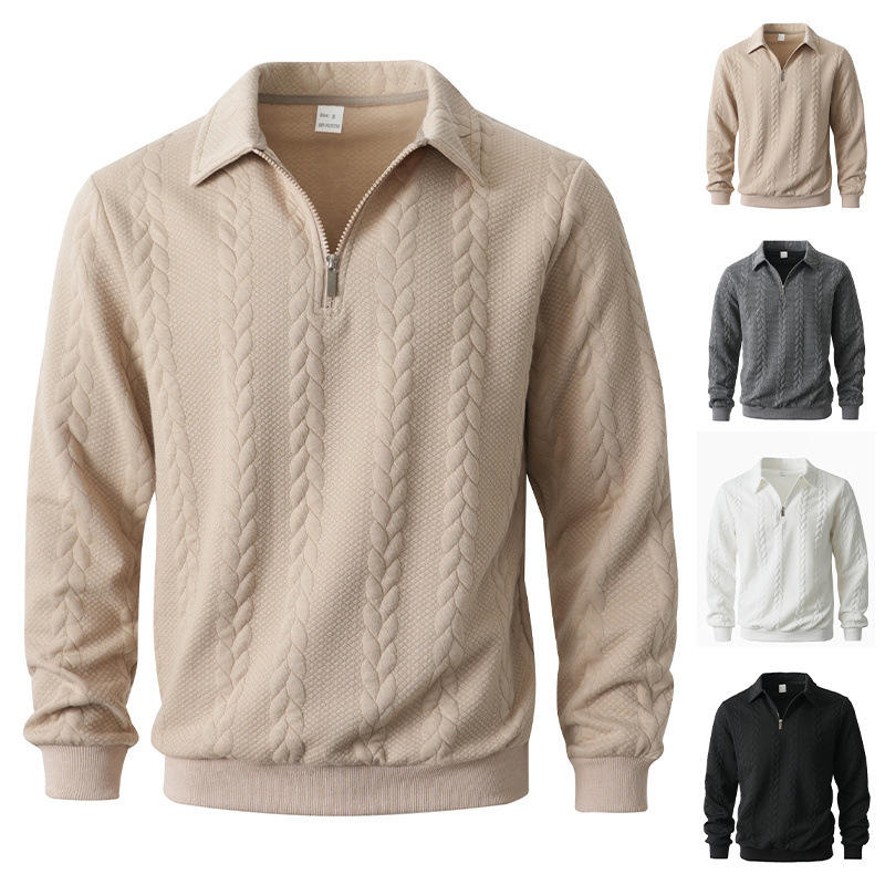 Cross Border Men's Jacquard Zip Collar Pullover Sweatshirt Autumn Winter Casual Sport Knitwear Long Sleeve Half Open Front