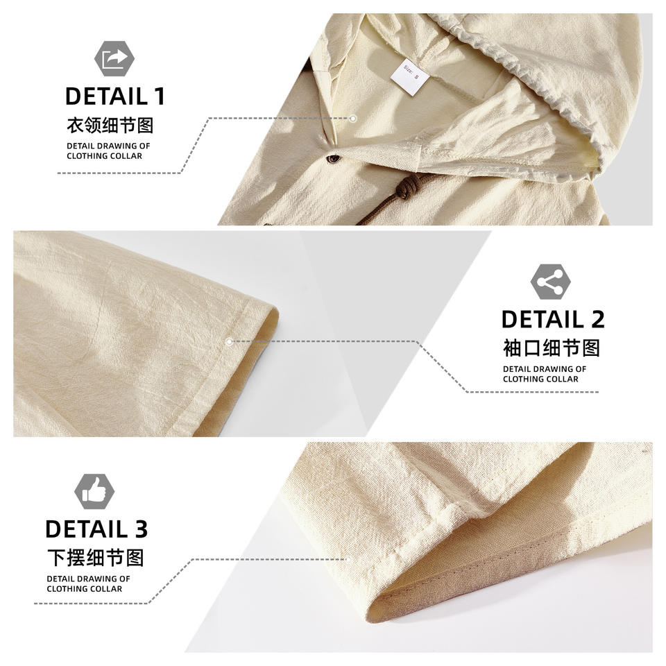 เสื้อคลุมคาร์ดิแกนผ้าฝ้ายลินินสีพื้นสำหรับผู้ชาย ทรงหลวมบางเบา สไตล์ลำลอง มีป้าย DF-152
