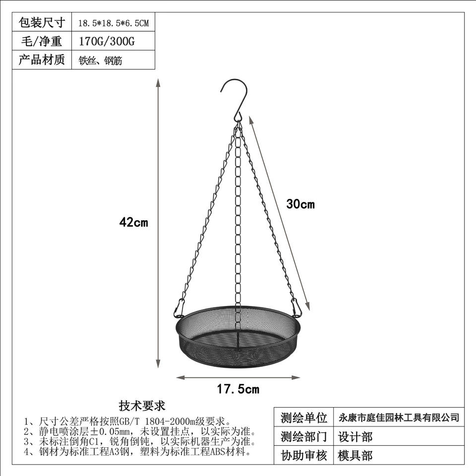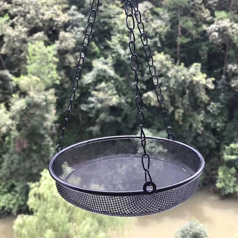 ถาดตาข่ายแขวนรูปวงกลมสีดำสำหรับให้อาหารนกแบบข้ามพรมแดน พร้อมโซ่ แข็งแรงทนทานสำหรับใช้งานกลางแจ้ง