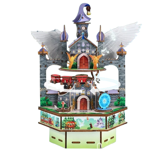 กล่องดนตรีไม้ทำมือรูปปราสาทน้ำแข็งเมืองในฝัน ชุดตัวต่อไม้เสริมพัฒนาการ ประกอบเองได้ ของขวัญวันเกิด นำเข้าจากต่างประเทศ