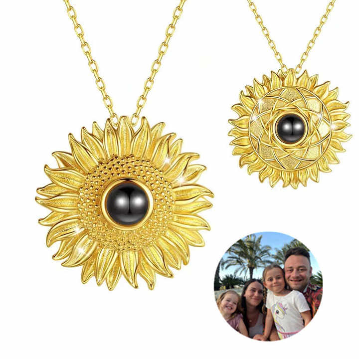 สร้อยคอจี้ดอกทานตะวันคลาสสิกแบบใหม่ข้ามพรมแดน100ภาษา 'I Love you' โลหะฉายภาพที่กำหนดเองสำหรับวันครบรอบ