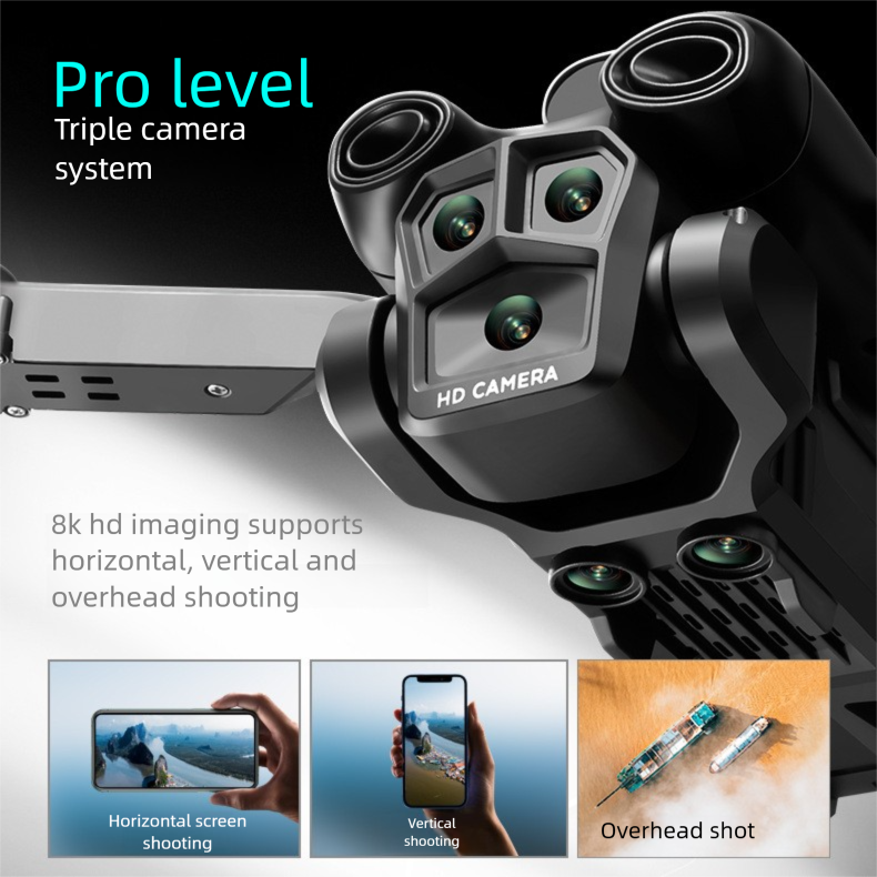 โดรนสามกล้อง S19เครื่องบินข้ามพรมแดนสำหรับถ่ายภาพถ่ายทางอากาศคอปเตอร์สี่ใบพัดรีโมทคอนโทรลแบบพับได้