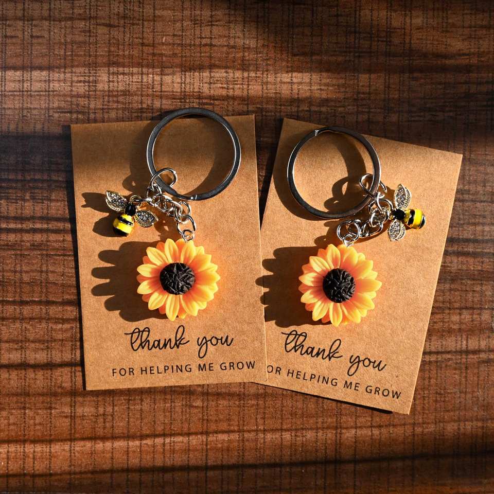สินค้าใหม่แบบข้ามพรมแดน [ขอบคุณ] การ์ดขอบคุณสำหรับภาษาอังกฤษพวงกุญแจพวงมาลัยพวงมาลัยพวงมาลัยพวงมาลัยลายผึ้งสุดสร้างสรรค์