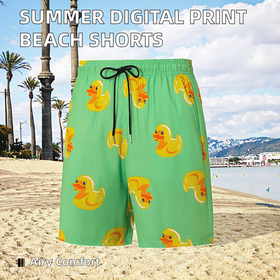 กางเกงขาสั้นชายหาดเอวยางยืดสำหรับฤดูร้อนแบบใหม่ ผ้าแคนวาส ระบายอากาศ แห้งเร็ว ไม่ยับ สวมใส่สบาย