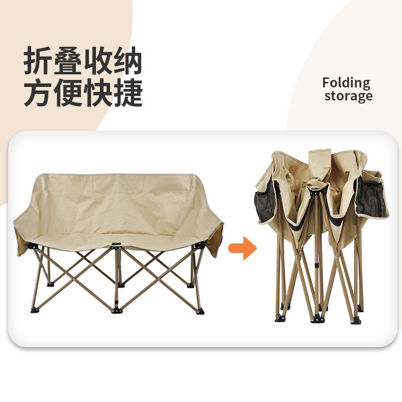 เก้าอี้พับคู่แบบพกพาสำหรับใช้งานกลางแจ้ง รุ่น Cross Border Outdoor Folding Double Moon Chair สีกากี รูปทรงสี่เหลี่ยมผืนผ้า เหมาะสำหรับคู่รัก