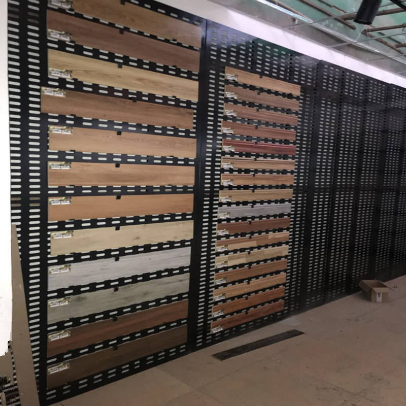 แผ่นไม้เจาะรูสำหรับติดตั้งข้ามพรมแดน แผ่นผนังแบบอิฐ แผ่นเพ็กบอร์ด แผ่นไม้เอียงขนาดใหญ่ ชั้นวางตัวอย่างพื้นไม้