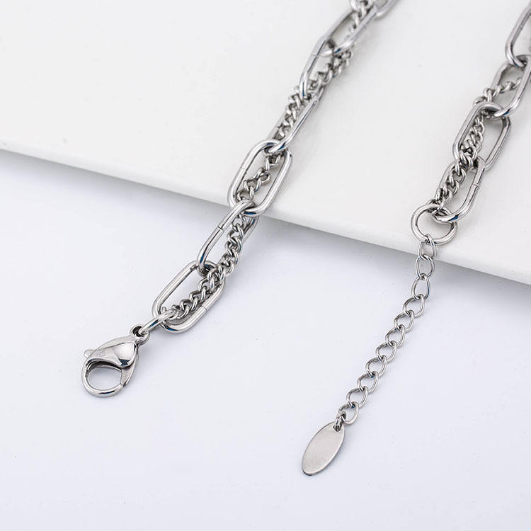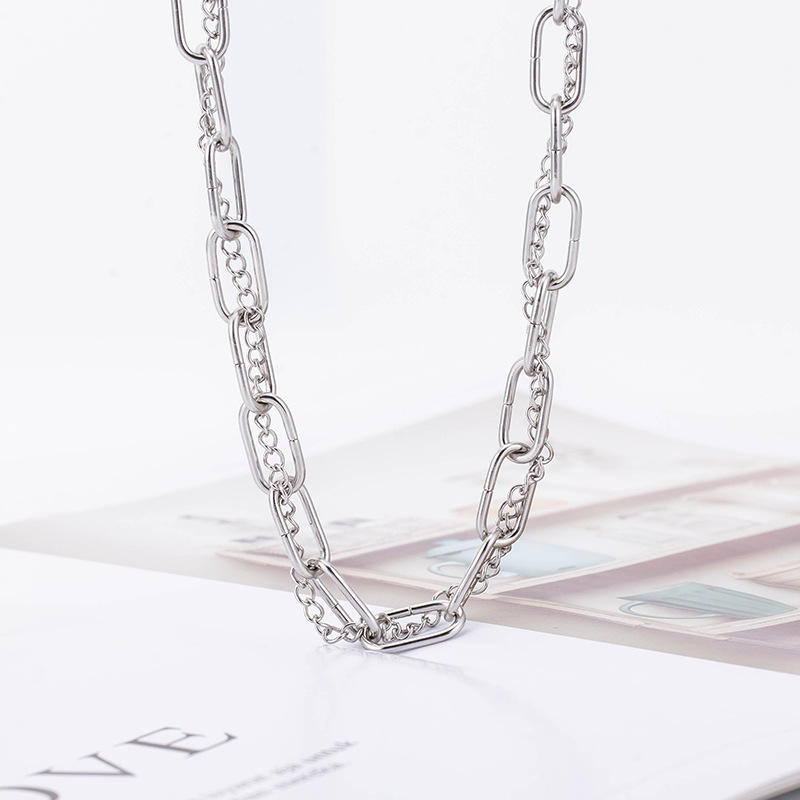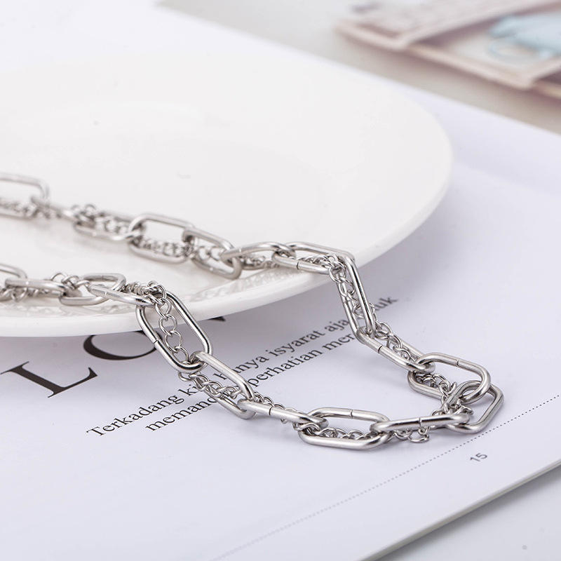 สร้อยคอคลาวิเคิลสไตล์พังก์ฮิปฮอปข้ามพรมแดน ทำจากไทเทเนียมสตีล ดีไซน์สองชั้น สำหรับทั้งชายและหญิง สไตล์เรขาคณิต เครื่องประดับแฟชั่น