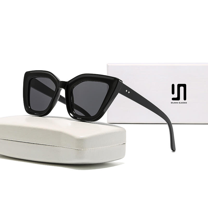 แว่นกันแดดทรงแคทอายสไตล์เรโทรสำหรับผู้หญิง ป้องกันรังสียูวี 400 กรอบพลาสติก รุ่นที่ 3 เลนส์พีซี สีดำ