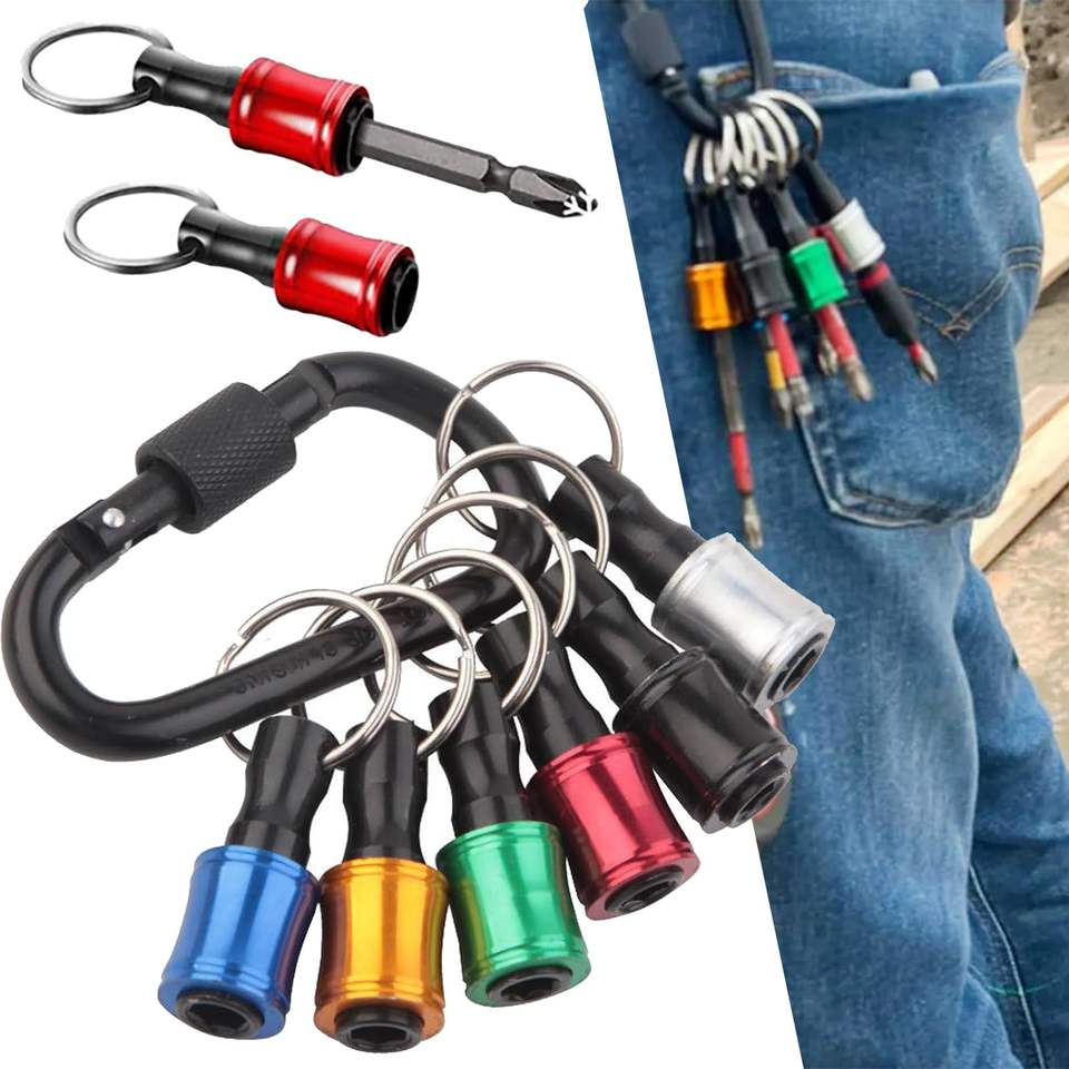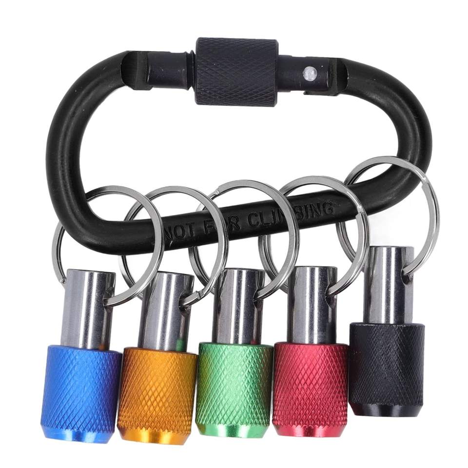 ชุดไขควงหัวเปลี่ยนแบบพกพาพร้อมห่วงคล้องกุญแจ ขนาด 1/4 นิ้ว พร้อมก้านต่อแบบคาราไบเนอร์หลากสี ด้ามจับอะลูมิเนียม ป้องกันการลื่นไถล