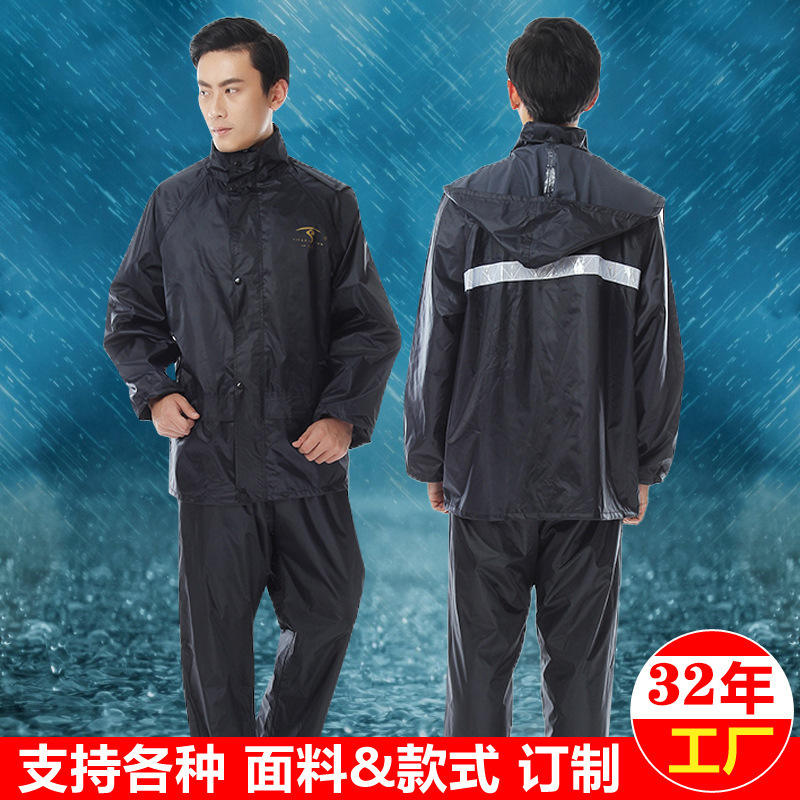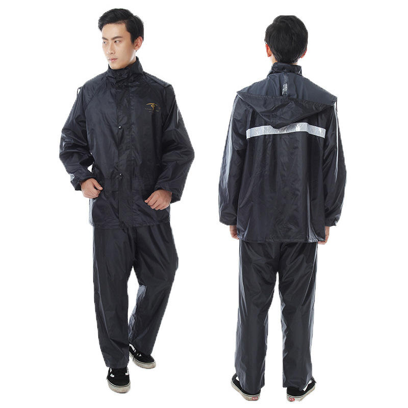 ชุดเสื้อกันฝนและกางเกงกันฝนแบบครอสบอร์เดอร์ สีน้ำเงินเข้ม สองชั้น หนาขึ้น พร้อมแถบสะท้อนแสง สำหรับตั้งแคมป์ ผู้ใหญ่