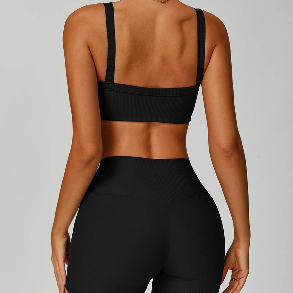 เสื้อชั้นในกีฬาแบบไขว้หลัง สายคู่ ดีไซน์เว้าหลัง กระชับ เหมาะสำหรับโยคะ วิ่ง และออกกำลังกาย