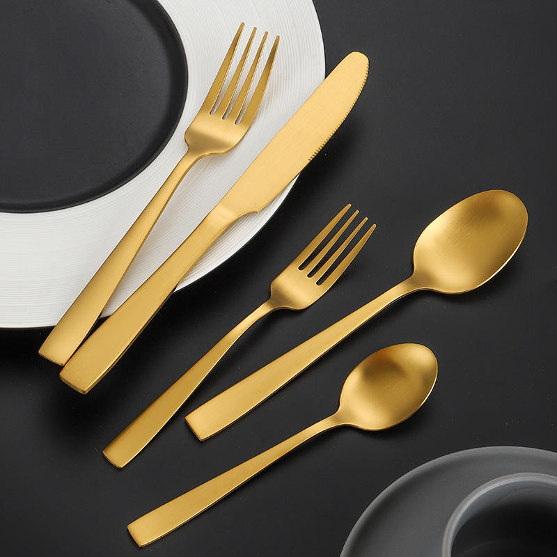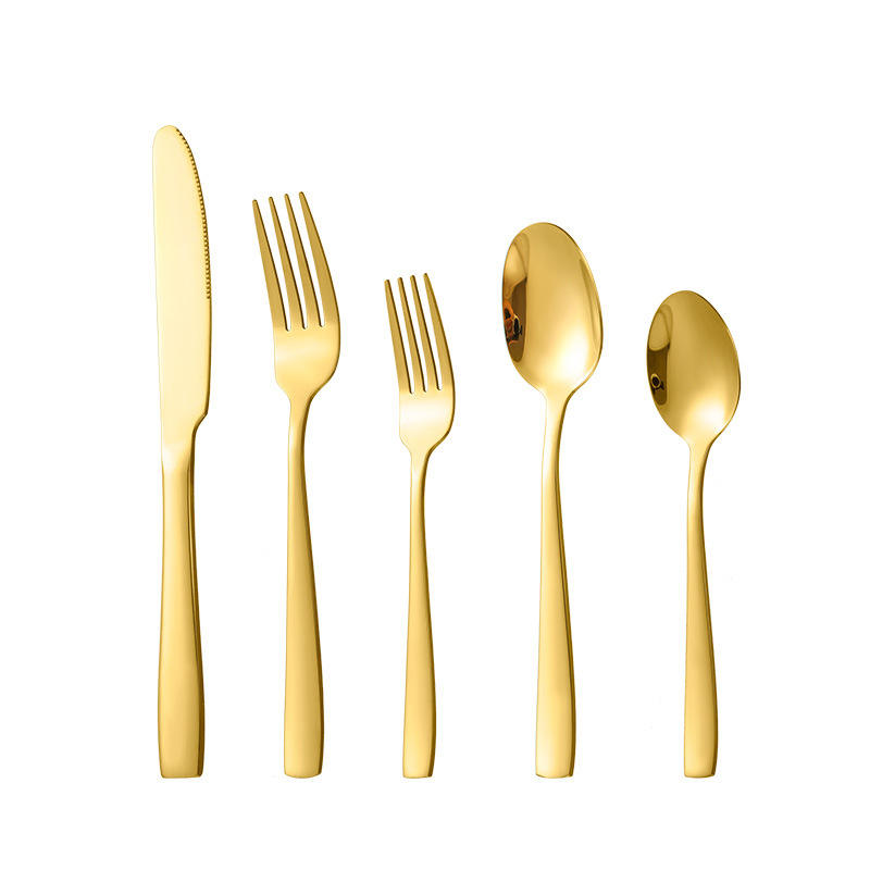 ชุดช้อนส้อมสแตนเลสแบบครอสบอร์เดอร์ ด้ามจับทรงเหลี่ยม ชุบไทเทเนียม 5 ชิ้น ทนทาน สำหรับอาหารตะวันตก ใช้ในบ้านและโรงแรม