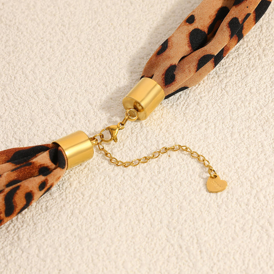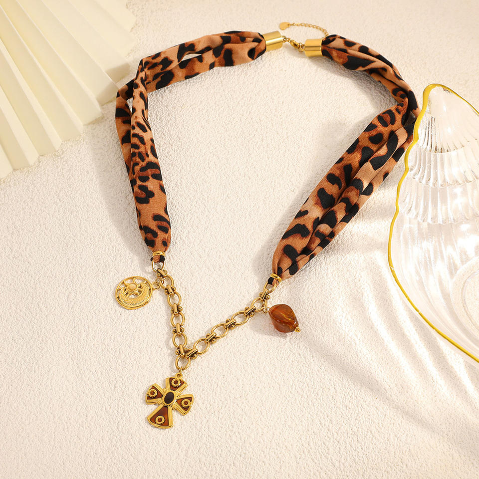 สร้อยคอสแตนเลสข้ามพรมแดนผ้าพันคอพิมพ์ลายเสือดาวชุบทอง18K จี้ดวงจันทร์ตามธีมเครื่องประดับแฟชั่น