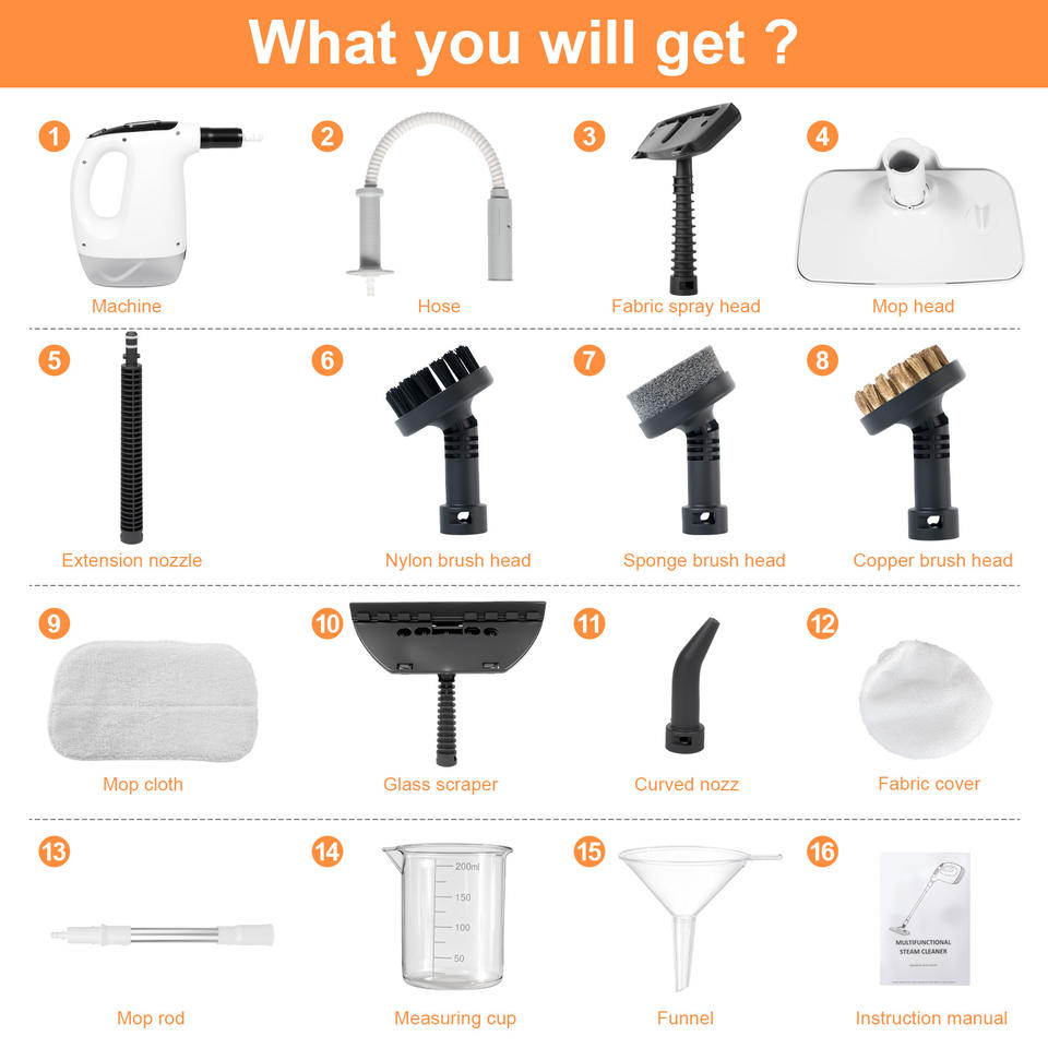 ไม้ถูพื้นไอน้ำแบบพกพา Huahanxing 1500W กำลังสูงอเนกประสงค์สำหรับใช้ในครัวเรือน เครื่องทำความสะอาดไอน้ำอุณหภูมิสูง