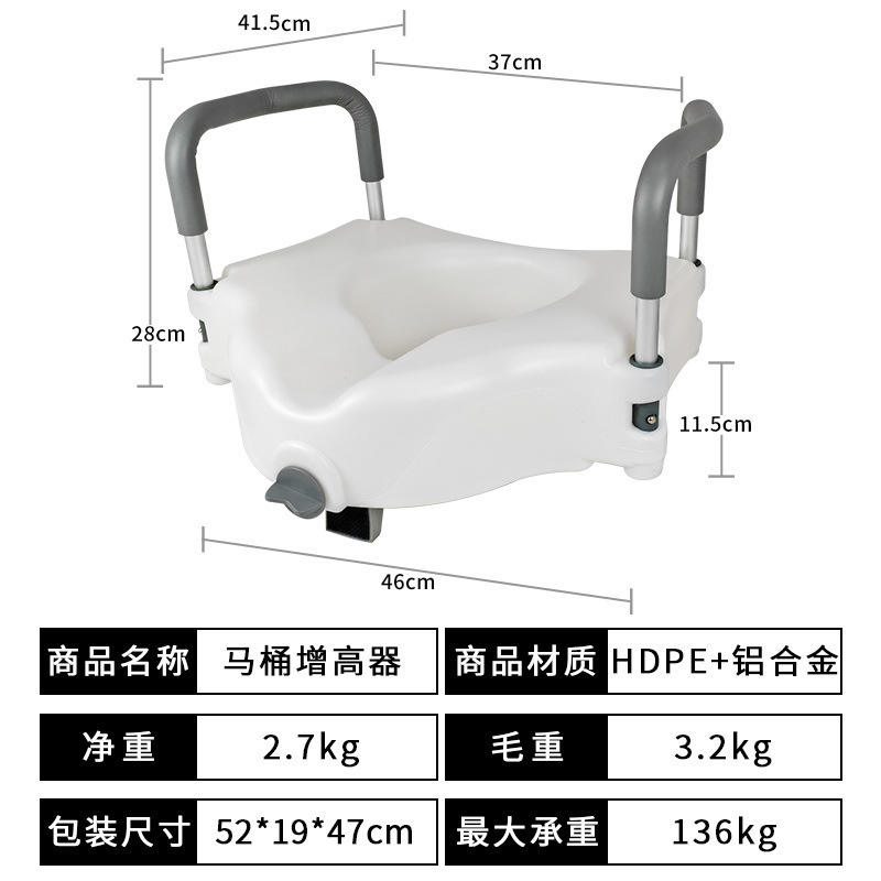 ที่ยกฝารองนั่งชักโครกแบบข้ามพรมแดน พร้อมที่วางแขน วงแหวนเพิ่มความสูง สำหรับสตรีมีครรภ์ พลาสติก 46x41x28 ซม. รับน้ำหนักได้ 120 กก.