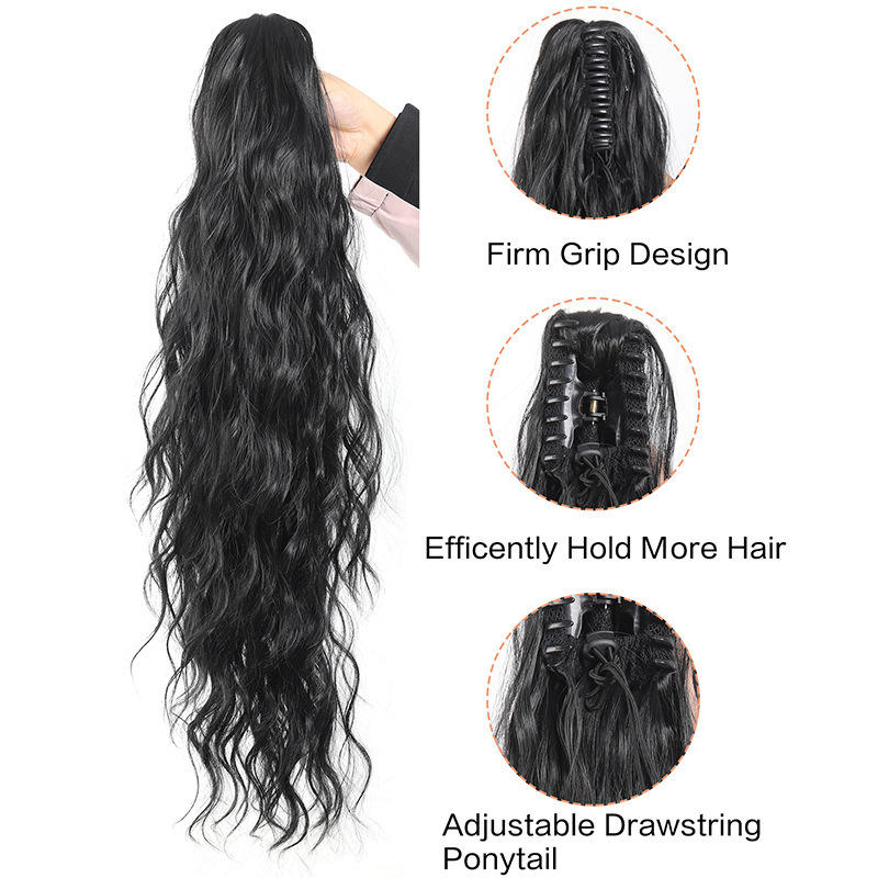 วิกผมหางม้าแบบหนีบ สำหรับผู้หญิง สไตล์ยุโรปอเมริกัน แบบดัดลอนฟูฟ่อง ขนาดใหญ่ 26 นิ้ว ต่อผมแบบไม่ต้องใช้กาว