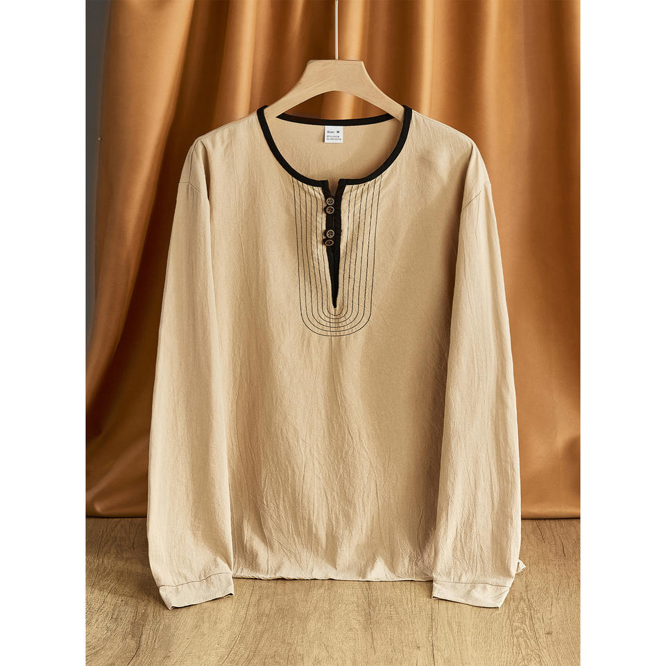 เสื้อเชิ้ตผ้าลินินแขนยาวผู้หญิงสไตล์ครอสบอร์เดอร์ ทรงเรโทรลำลอง ผ้าคอตตอนผสมบางเบา ใส่ได้ทุกวัน ไซส์ M พร้อมป้าย