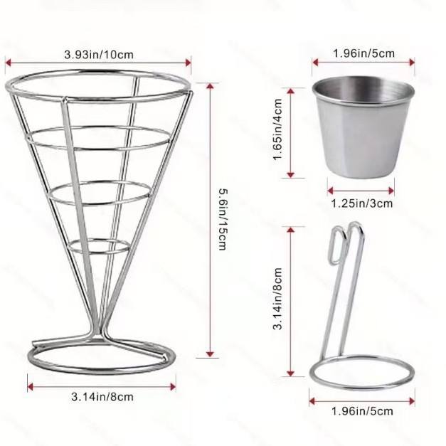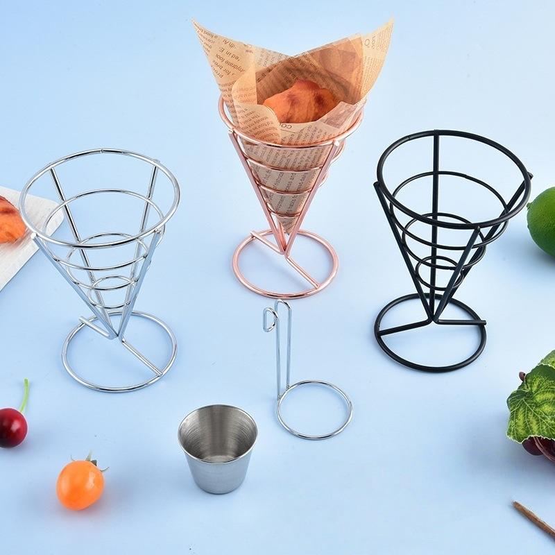 ตะกร้าเหล็กดัดทรงกรวยขนาดเส้นผ่านศูนย์กลาง 10 ซม. สูง 15 ซม. ภาชนะใส่อาหารทนทานสำหรับร้านอาหาร