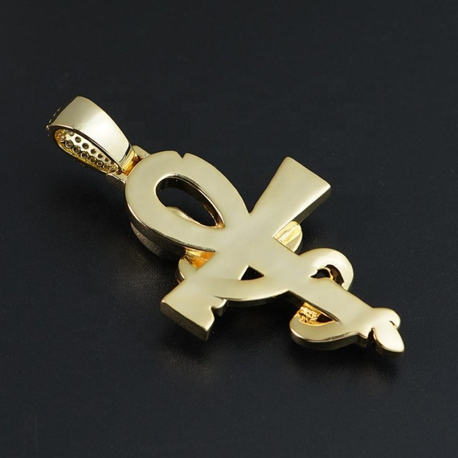 จี้รูปงูดีไซน์กากบาท โดดเด่นไม่ซ้ำใคร ประดับด้วยทองเหลืองวิบวับ สไตล์ฮิปฮอป สร้อยคอรูปอังค์กากบาท เครื่องประดับแฟชั่น