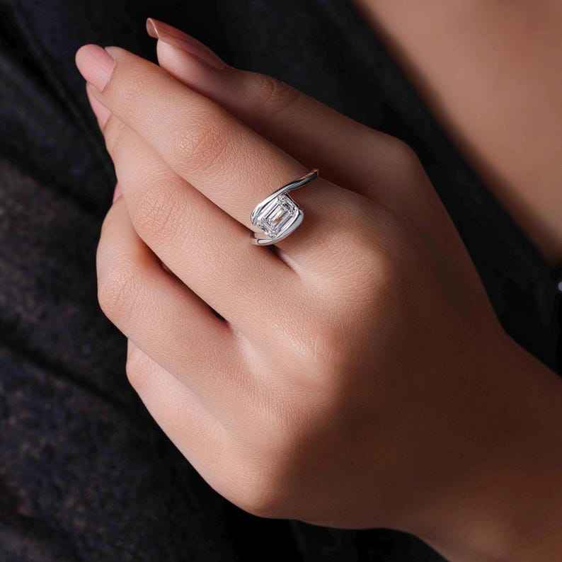 แหวนเพชรสำหรับให้เป็นของขวัญวงแหวนตัดสีมรกต