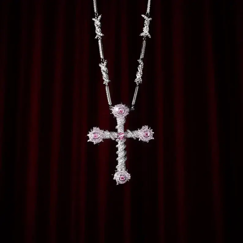 จี้รูปไม้กางเขนประดับเพชรซิร์คอนชุบทองประดับมุกสไตล์ศาสนา ชุบทอง ขนาด 40x28 มม. เหมาะสำหรับใส่กับสร้อยขนาดไม่เกิน 5 มม.