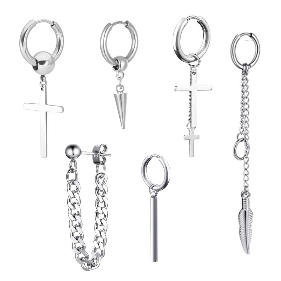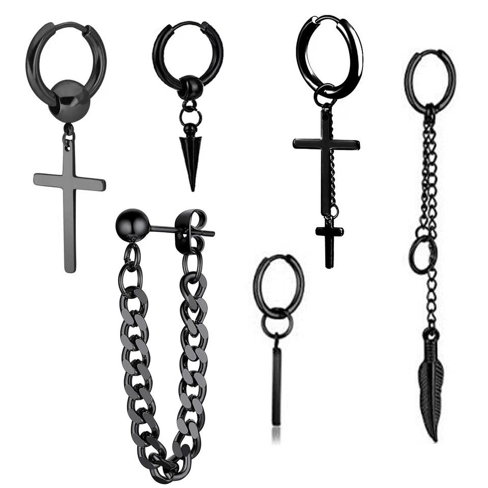 ชุดต่างหูห่วงจี้รูปกางเขน สแตนเลสสตีล สายยาวสีดำ แฟชั่นสำหรับทุกเพศ
