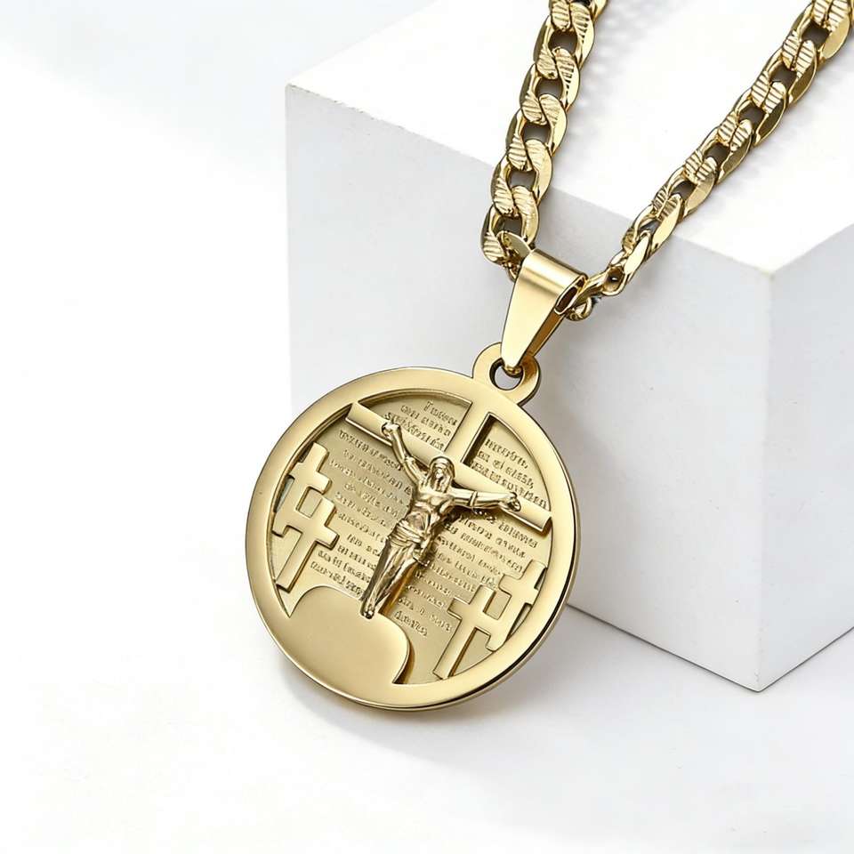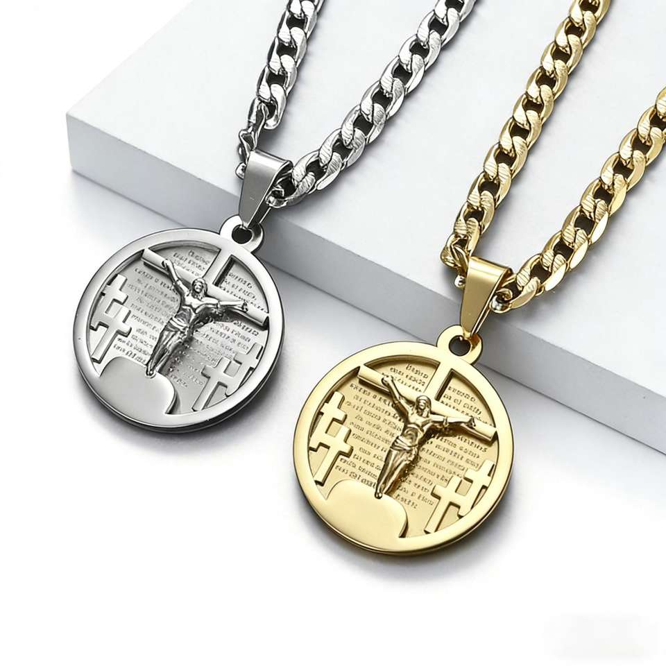 สร้อยคอจี้รูปกางเขน ชุบทอง 18K สร้อยคิวบันไทเทเนียมสตีล สำหรับทุกเพศ ใส่ได้ทุกวัน