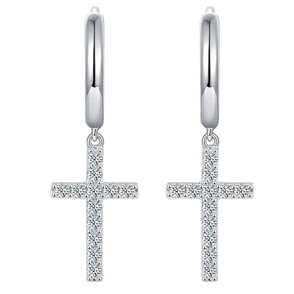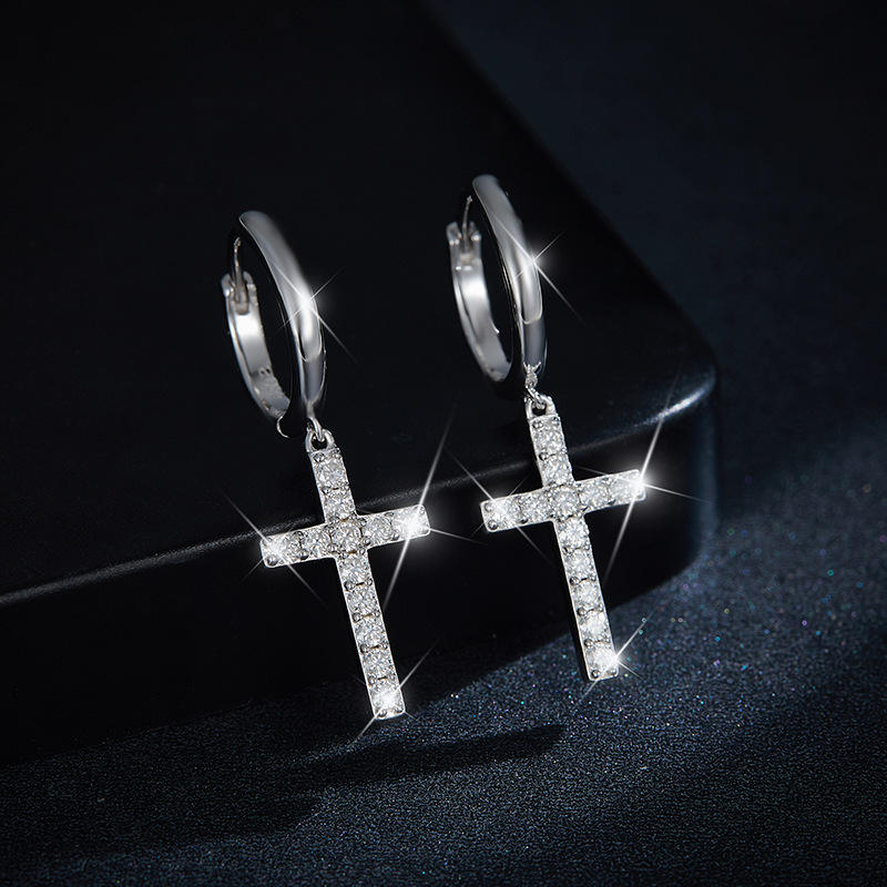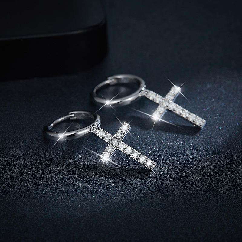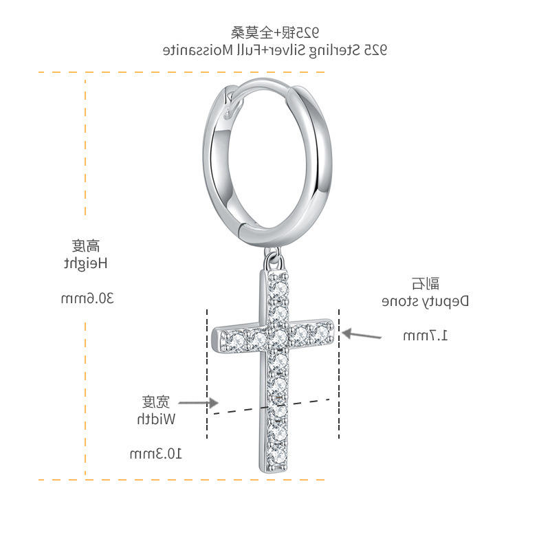 ต่างหูเงินแท้ทรงกลมประดับมอสซาไนต์สำหรับผู้หญิง ดีไซน์หรูหราสีขาว ตัวเรือนแบบกรงเล็บและทรงกลม