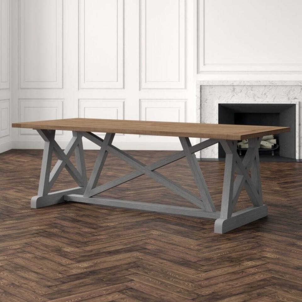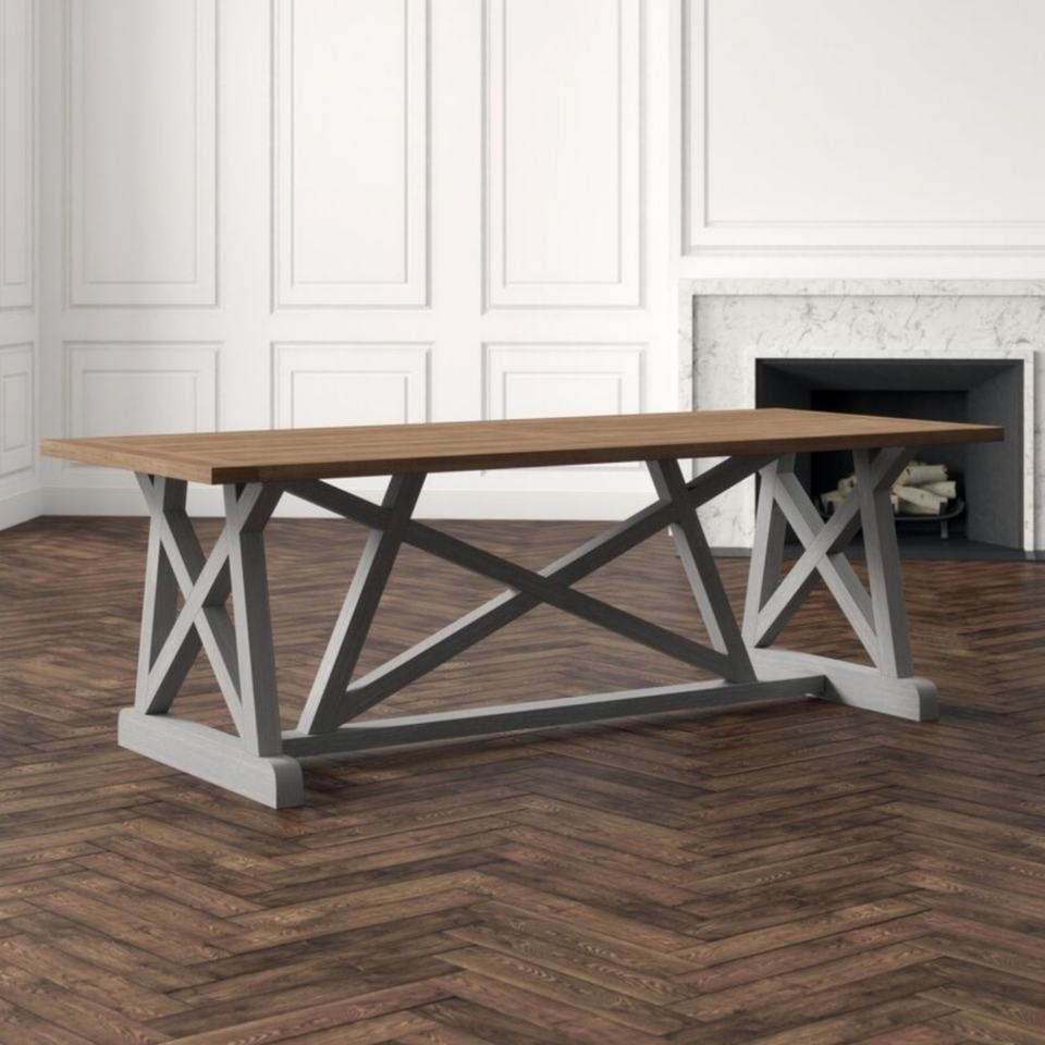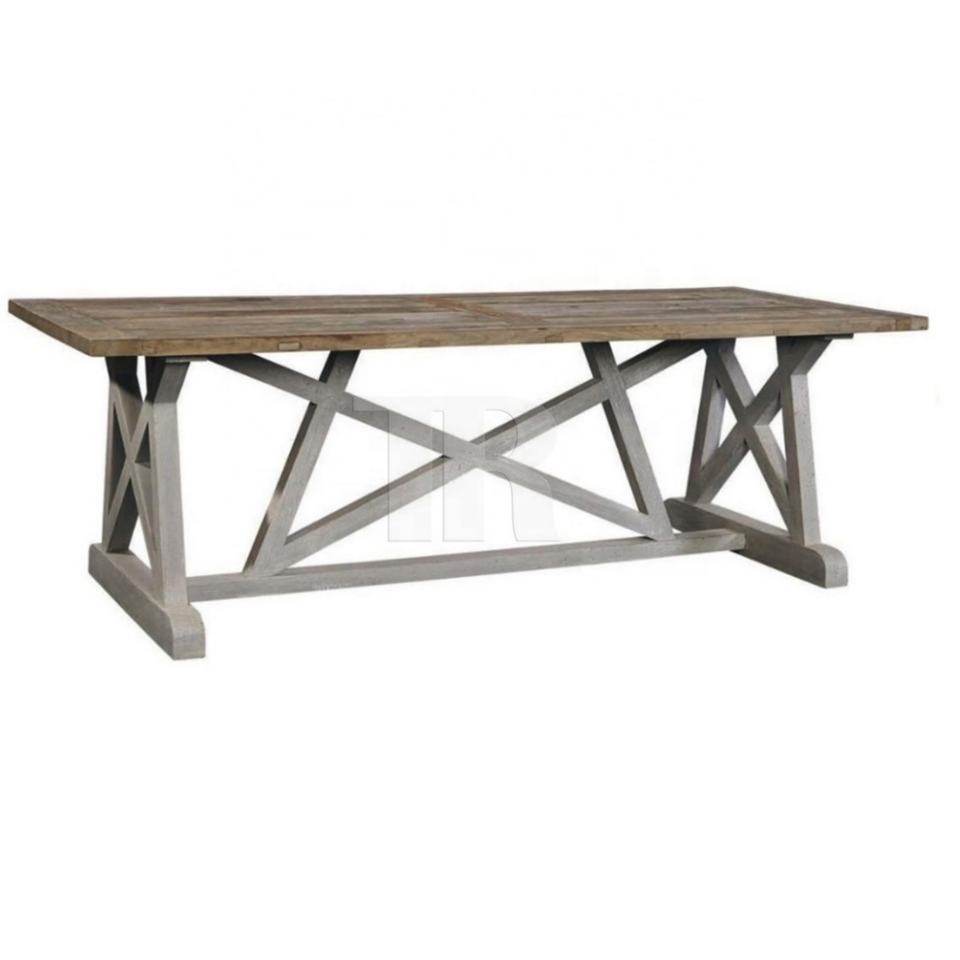 โต๊ะอาหารทรงกากบาทฐานไม้เอล์มโบราณรีไซเคิล