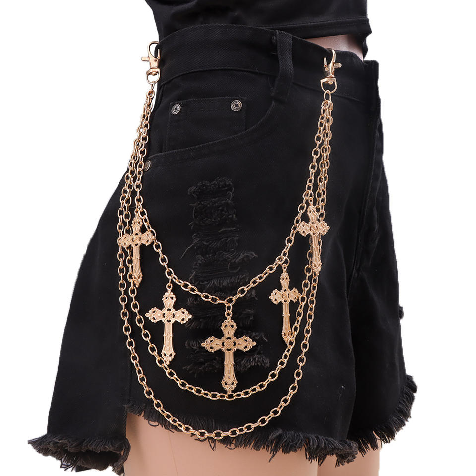โซ่คาดเอวโลหะผสมสังกะสีแบบหลายชั้นพร้อมจี้สำหรับผู้หญิง สไตล์ฮิปฮอป แฟชั่นลำลอง