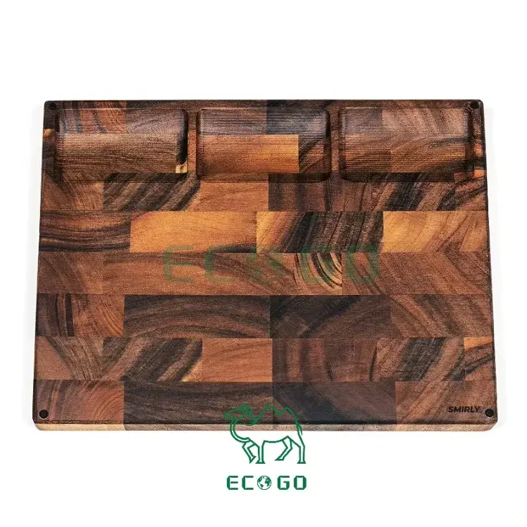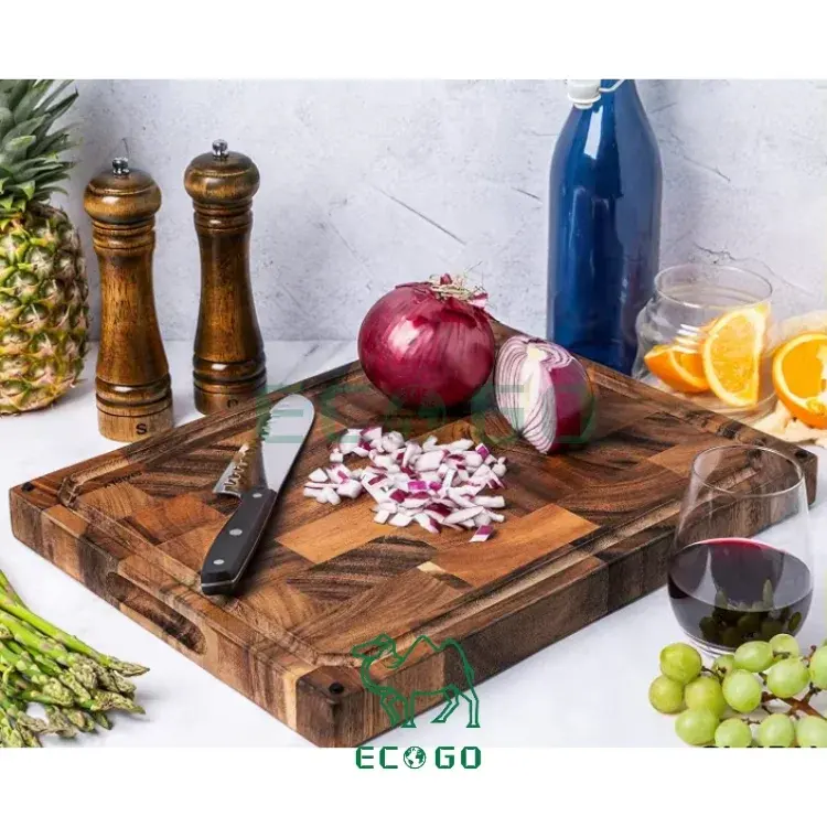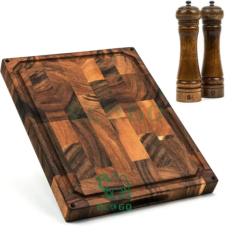 เขียงไม้อะคาเซียแบบมีขอบเขียงสำหรับใช้ในครัวแผ่นไม้ไผ่ขนาดใหญ่ติดโลโก้เลเซอร์แบบออกแบบได้ตามต้องการ