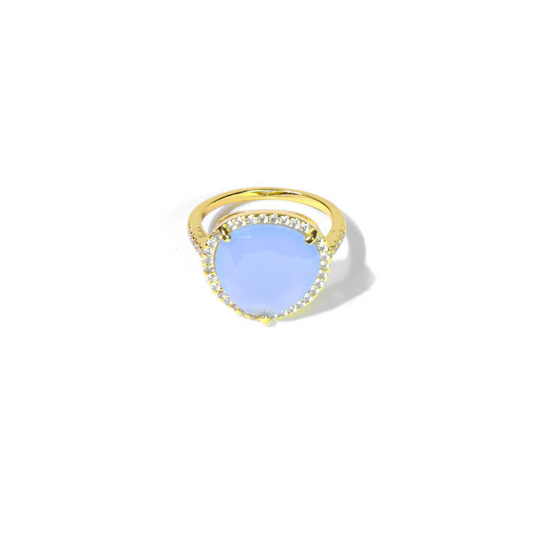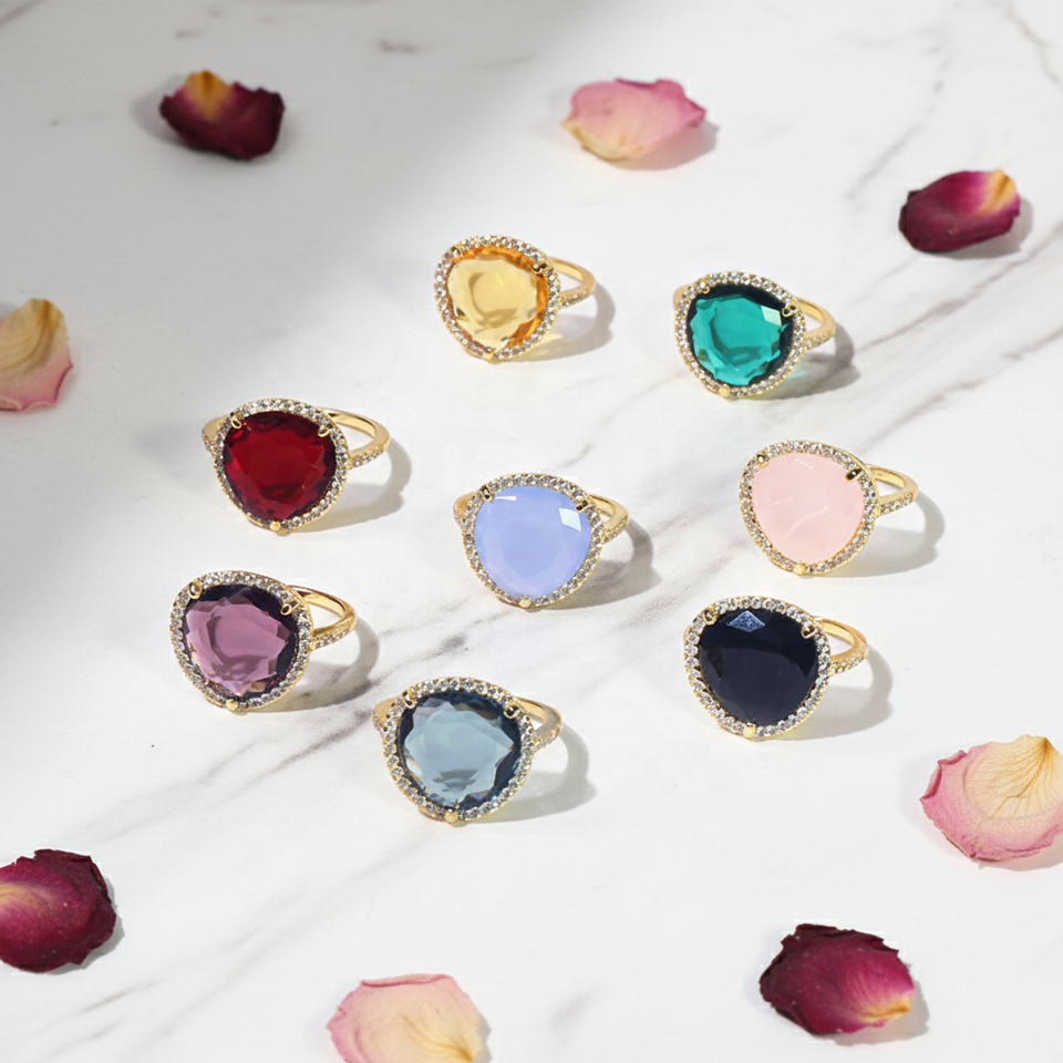 แหวนคริสตัลทองแดงทรงสามเหลี่ยม ประดับเพชรซิคอน ฝังละเอียด งานแฮนด์เมด สำหรับอีคอมเมิร์ซข้ามพรมแดน