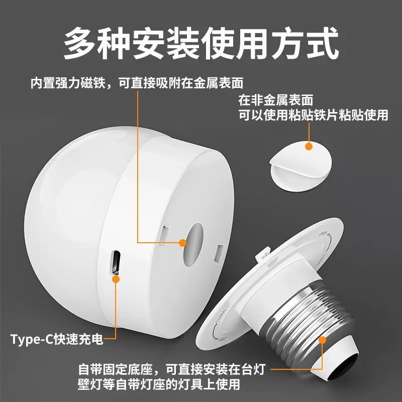 หลอดไฟ RGB เจ็ดสีแบบชาร์จไฟได้ชนิดขั้วเกลียว E27 สำหรับใช้งานข้ามประเทศ ควบคุมด้วยรีโมทที่บ้าน ไม่ต้องเดินสายไฟ ใช้แม่เหล็กยึดติดกับตู้ ชาร์จผ่าน USB