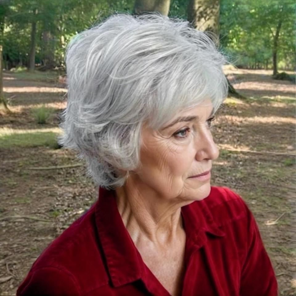 วิกผมผู้หญิงสูงวัยแบบสั้นตรงและหยิกสีเทาขาว ทนความร้อนสูง ผลิตด้วยเครื่องจักร จัดส่งแบบดรอปชิปปิ้ง