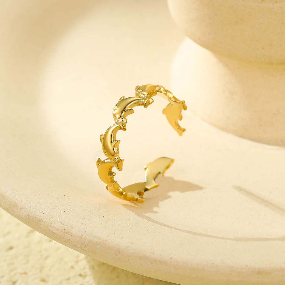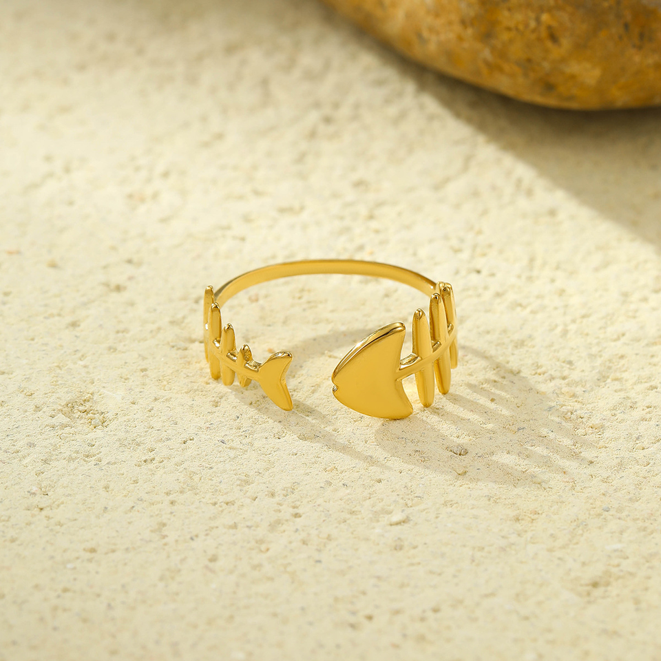 แหวนสแตนเลสสตีลลายก้างปลาสไตล์ยุโรปและอเมริกา ชุบทอง 18K แบบเปิด