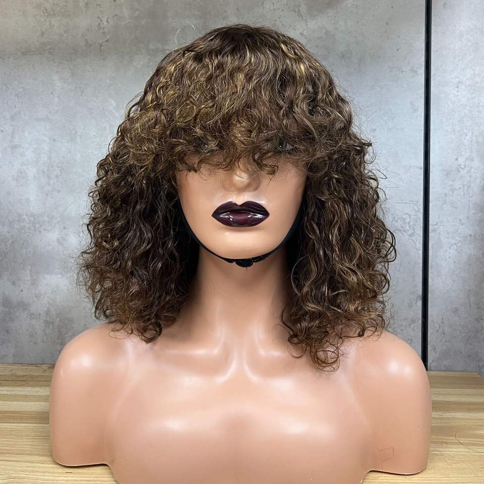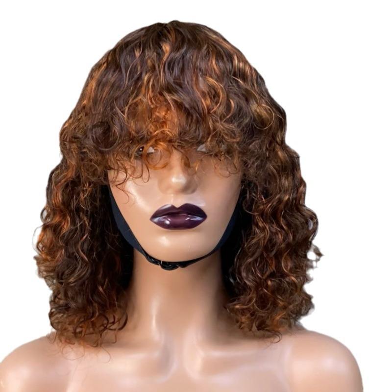Cross-border European and American wigs full mechanism curly hair bangs real hair bangs headgear short curl